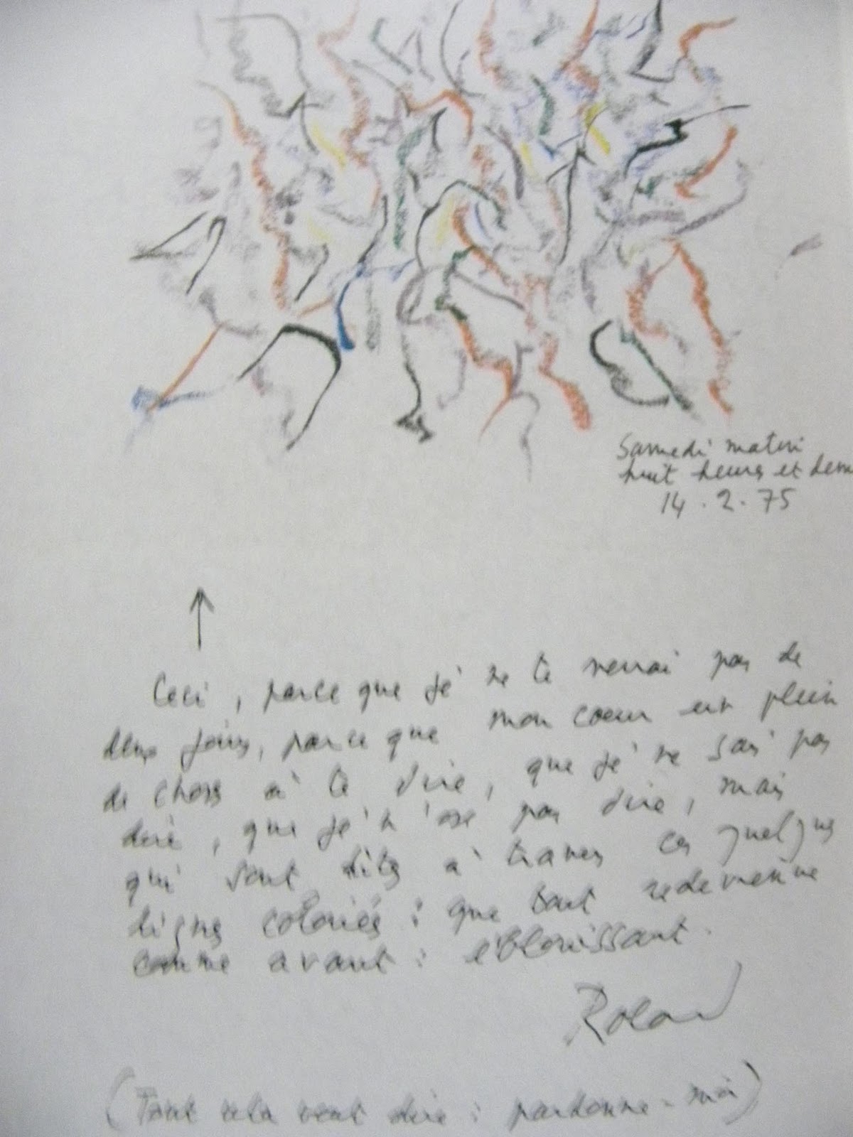 “A pintura de Roland Barthes é uma escritura ilegível, um anti-querer-dizer. Ela não quer dizer nada […] Pois ela quer, e quer de uma maneira muito forte, já que brota do desejo. E antes de tudo ela quis ser, e é. É até mesmo esta excelente surpresa: a inteligência é bela, quando é nua.”