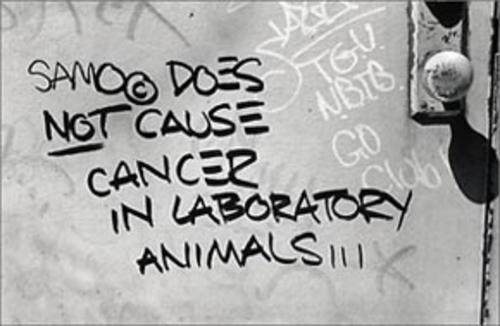 Transvanguarda foi um termo criado por Achille Bonito Oliva. Em Transvanguardia Italiana (1980), Oliva menciona um nomadismo cultural e ecletismo estilístico, uma arte marcada por citações. Seriam “Linguagens próximas e distantes, abstratas e figurativas, internacionais e autóctones, experimentais e tradicionais, cultas e populares convivem numa obra que utiliza estilos de arte como ‘ready-made’, formas pesquisadas através da memória e livremente reconvertidas em obra.” (1998, p. 106). Bonito Oliva inclui Basquiat em sua lista de artistas pertencentes à Transvaguarda internacional (Id. Ib., p. 59). De fato, observamos o trabalho de Jean-Michel repleto de citações: da história da arte, como Olympia de Manet; de ordem política, como ao escrever “Samo does not cause cancer in laboratory animal” (imagem 11); ou de ordem religiosa, como ao mostrar auréolas e tridentes (imagem 6). Ao contrário do que o aspecto casual das citações, em sua materialidade informal do graffiti, pode indicar como superficial, elas se articulam no conjunto da sua obra como que estruturando numa poética bastante pessoal, que menciona sua condição de indivíduo único e sua dimensão de indivíduo socialmente construído — negro, bissexual, filho de imigrantes, urbano, e simultaneamente culto e marginal.