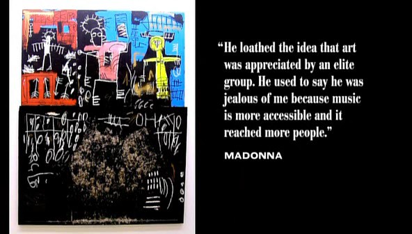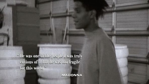 Basquiat, the radiant child (2010) é um documentário de Tamra Davis sobre o artista Jean-Michel Basquiat. Madonna e Jean tiveram um breve relacionamento, que é exposto no longa. Segundo Christopher Ciccone, irmão da rainha do pop, ela guarda (ou guardava) as pinturas que ganhou de Jean no lavabo!!! Screenshots!