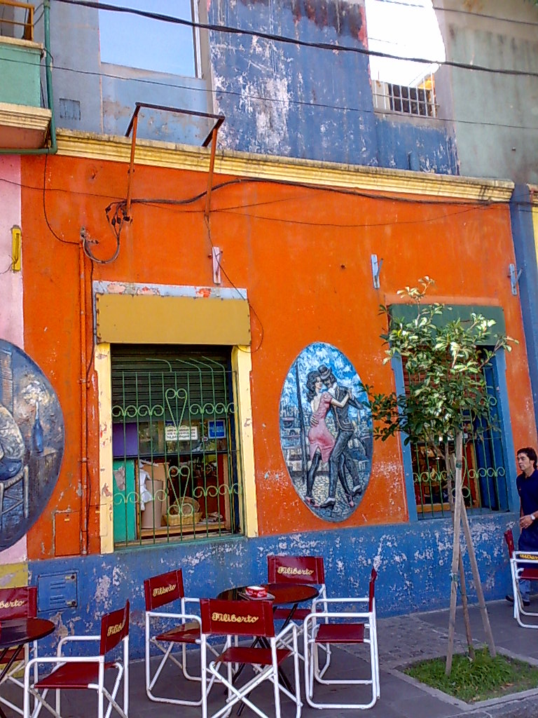 O Caminito, considerado um museu a céu aberto, fica no bairro de “La Boca”, segundo informação local, o mais pobre de BA, que faz fronteira com a cidade de Riachuelo. No bairro, encontramos o famoso estádio do Boca Juniors: La bombonera. O taxista pediu para não nos afastarmos mais de 4 quadras, pois seria perigoso, e, nas suas palavras: “existe muita diferença social na Argentina”. Fiquei apaixonada pelo Caminito (mesmo com 40 graus de febre), que é um conjunto de casas coloridas construídas pelos estivadores com metal reciclado. O lugar estava repleto de turistas, muitos japoneses e ingleses. Muitas lojas de suvenir, pessoas oferecendo foto em posições de tango e até um Maradona fajuto.