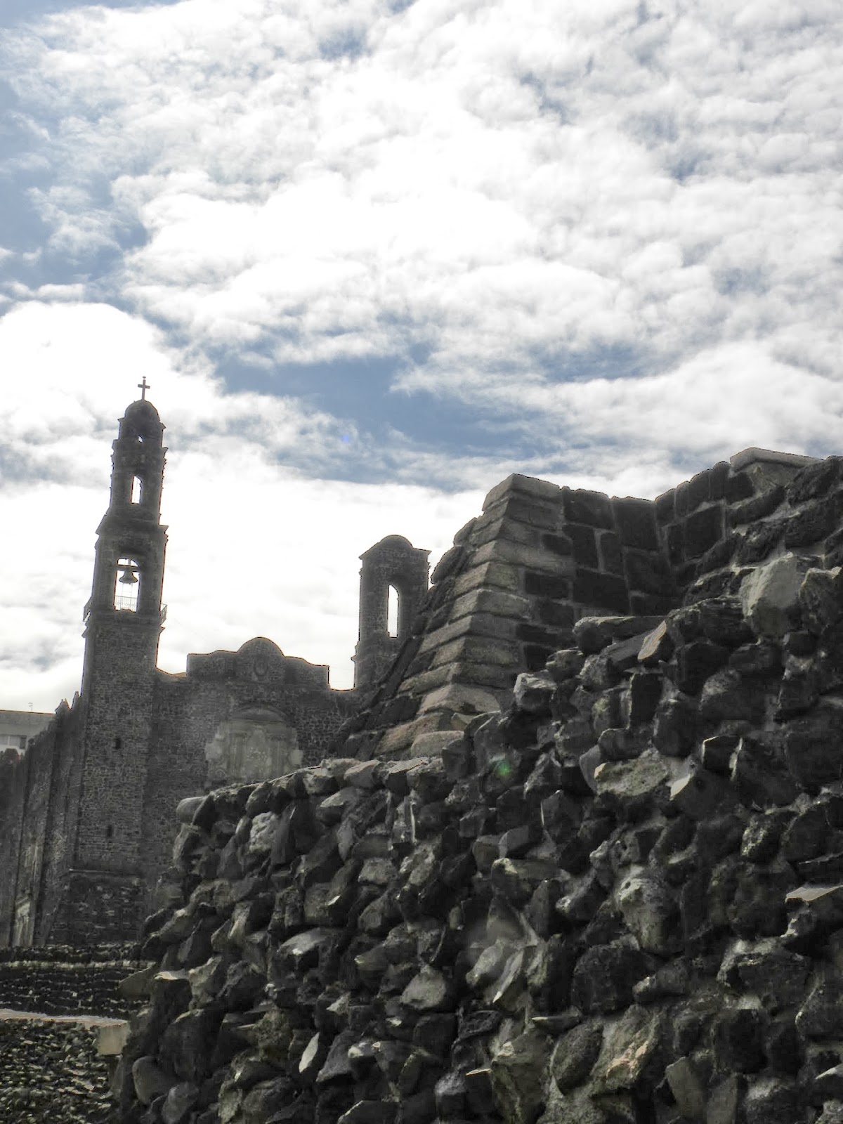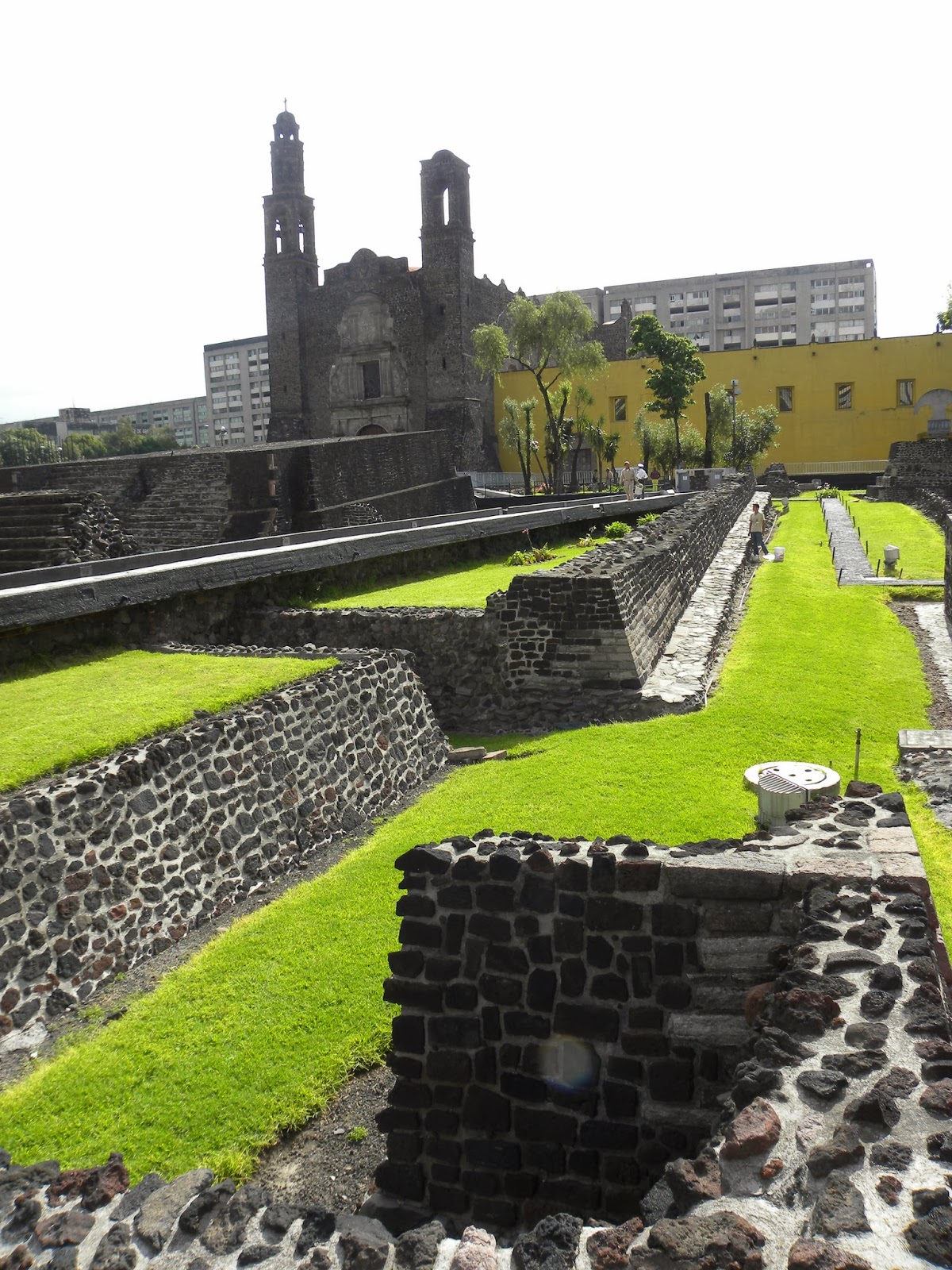 No caminho para Teotihuacan, conheci a zona arqueológica de Tlatelolco, segundo a Wikipédia, as diversas escadarias que se observam foram as fachadas principais das distintas etapas construtivas do Templo Maior, construído entre os anos 1337 e 1515. O altar a Sul, dedicado a Huitzilopochtli é de dimensões superiores àquele a Norte, dedicado a Tláloc, o qual apresenta nas fachadas Norte e Oriente decorações em baixo relevo.