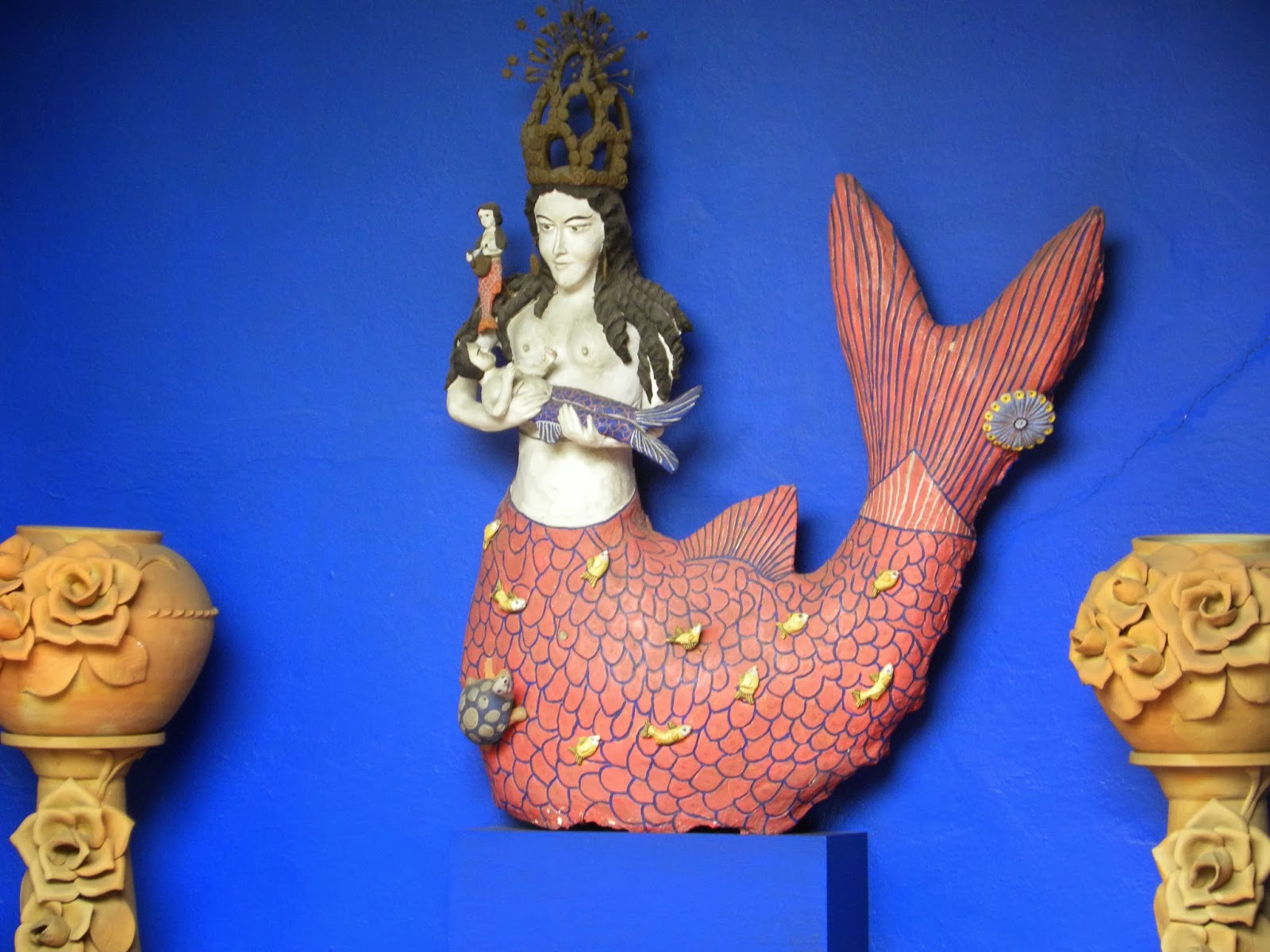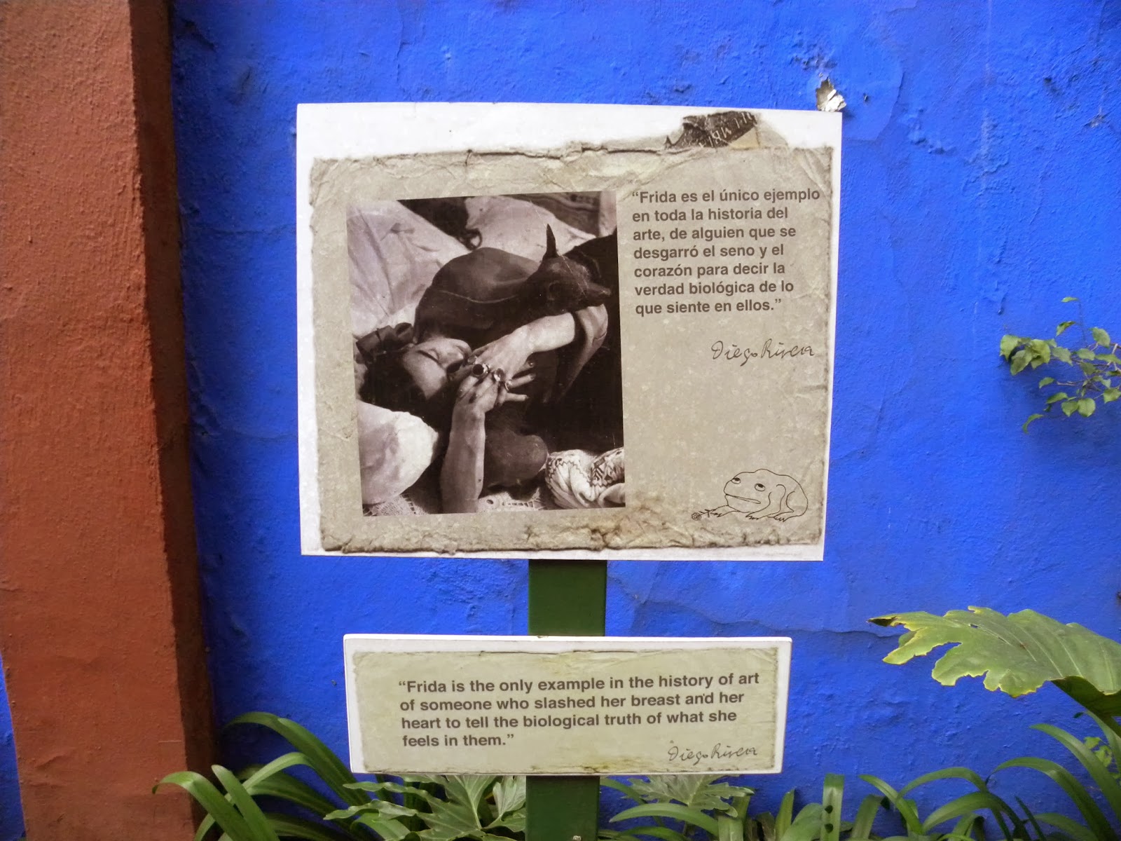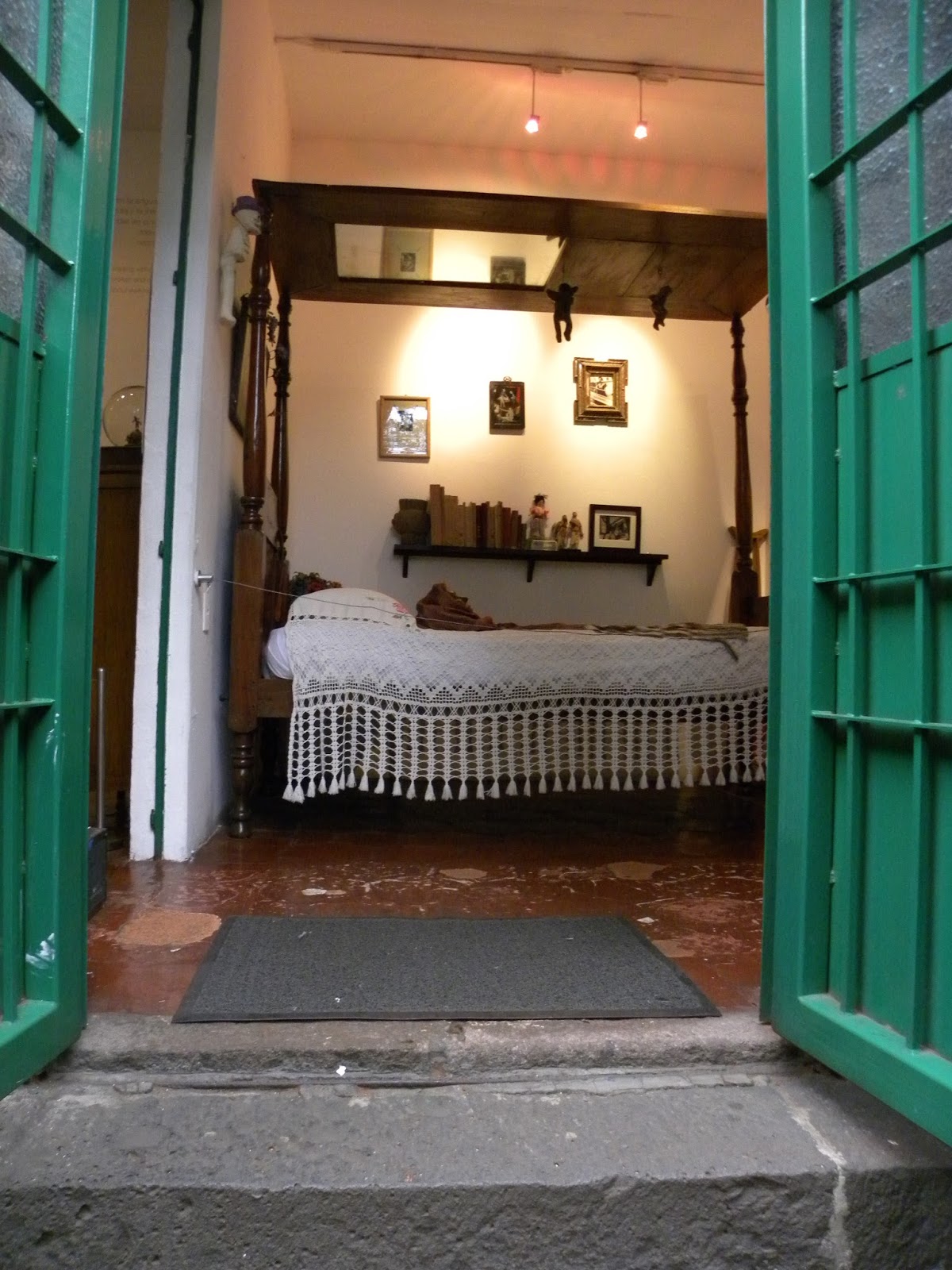 Vocês conseguem entender a emoção de circular pela casa da Frida Kahlo? Ela está em todos os cantos da casa e do jardim. Tudo parece intacto: móveis, almofadas e pincéis. Ao chegar ao seu quarto, é impossível conter as lágrimas, senti a dor que ela sentiu. É a sensação dilacerante da compaixão. Na saída, o último quadro: Viva la vida. Serve-nos uma suculenta melancia, diz que devemos viver a vida, enquanto se despedia pra nunca mais voltar. 😦