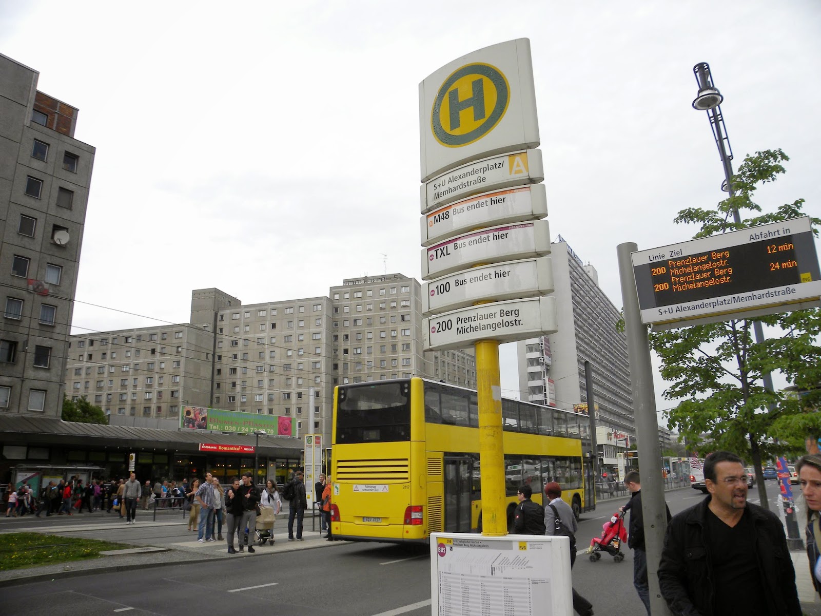 A praça Alexanderplatz, além de hospedar a famosa antena de TV, é um ponto importante da cidade, pois é ponto final dos ônibus do aeroporto, ponto final de diversos ônibus, estação de bonde elétrico, estação de trem e de metrô. Passei por lá todos os dias. Tinha um prédio onde as pessoas faziam Bungee jumping. Num domingo, tive que procurar um lanche naquela praça e algo me irritou: o turco que servia passou a mão na minha mão e me levantei imediatamente.