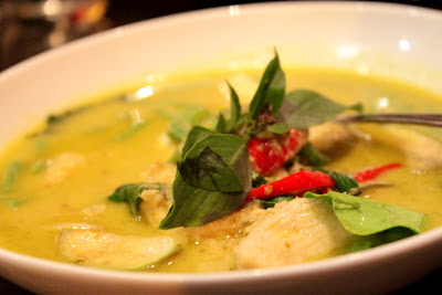 Gaeng Keow Wan Kai – Sopa de frango, beringela, broto de bambu, coentro, curry verde e leite de coco.