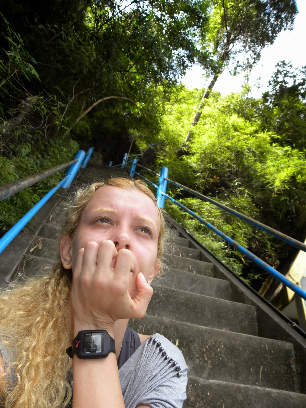 Comecei tranquilamente, fotografando, observando a paisagem. De repente, fui ficando mais ofegante, suada e com o rosto vermelho. As pessoas que estavam na excursão desistiram. No caminho, me diziam “você vai conseguir”. Todos os orientais que encontrei foram simpáticos, além do sorriso no rosto, me incentivaram. É uma verdadeira peregrinação de fé budista. Quando já não aguentava mais, um homem que estava descendo me disse “Parabéns, você chegou na metade do caminho!”. Sentei em um degrau e quase chorei. Mas a perseverança é um ensinamento budista, portanto, chegou o momento de mostrar a força e constância. Quando me dei conta que tinha chegado, vi uma torneira e me ajoelhei, bebendo a melhor água do mundo (normalmente não bebo água). Sem saber a procedência (provavelmente água da chuva), fiquei feliz por ter tomado a vacina de hepatite a. Sim, chegar ao topo foi incrível, por diversos motivos. Faria novamente? Acho que não seria capaz. Ao retornar, as pernas tremiam.
