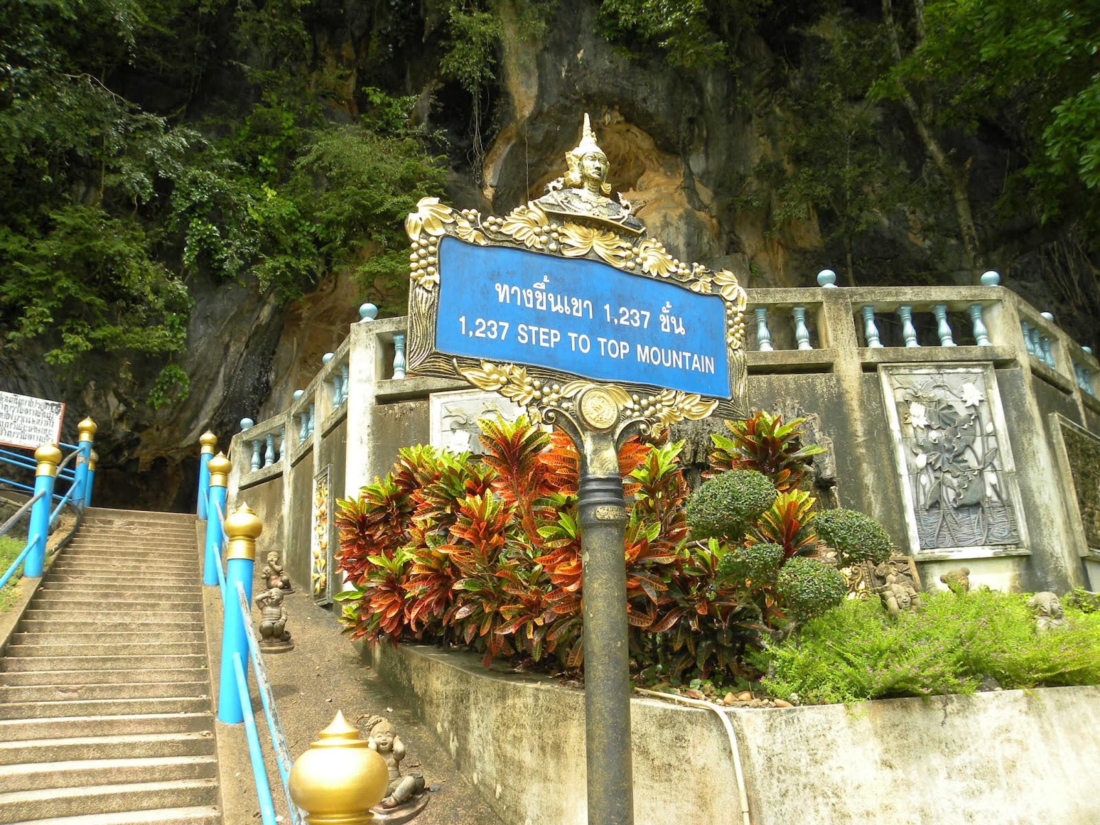 O Tiger Cave Temple fica numa região bem afastada em Krabi e consiste num templo com diversas construções. Lá tive uma das maiores provações da minha vida: subi 1.237 degraus para chegar ao topo. Só para uma breve comparação, a Igreja da Penha, no Rio de Janeiro, tem 365 degraus.
