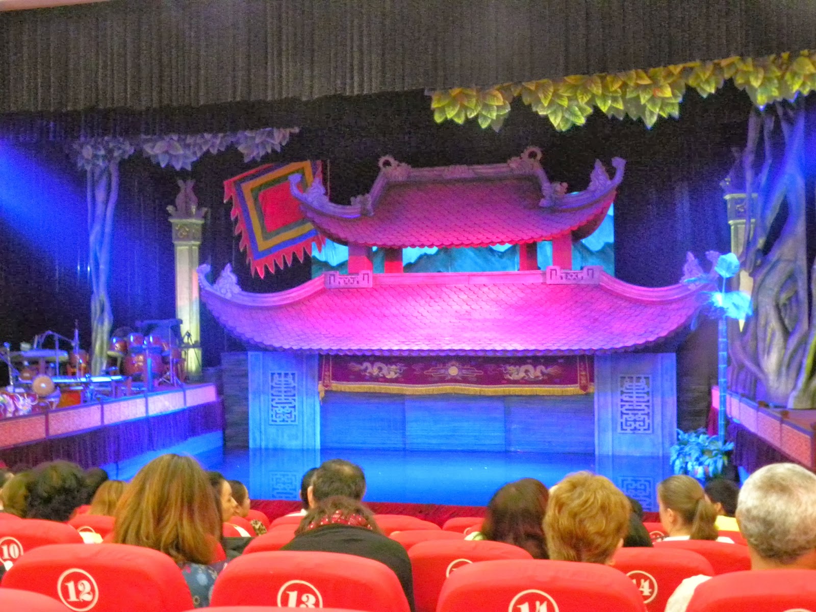 A primeira visita foi ao Water Puppet Show, que fica a poucos metros do hotel. A entrada custava 100.000 dongues. O que mais me impressionou foi o som dos instrumentos tipicamente orientais. No final, comprei um boneco por 80.000 dongues para minha sobrinha. Depois comprei outro no comércio.