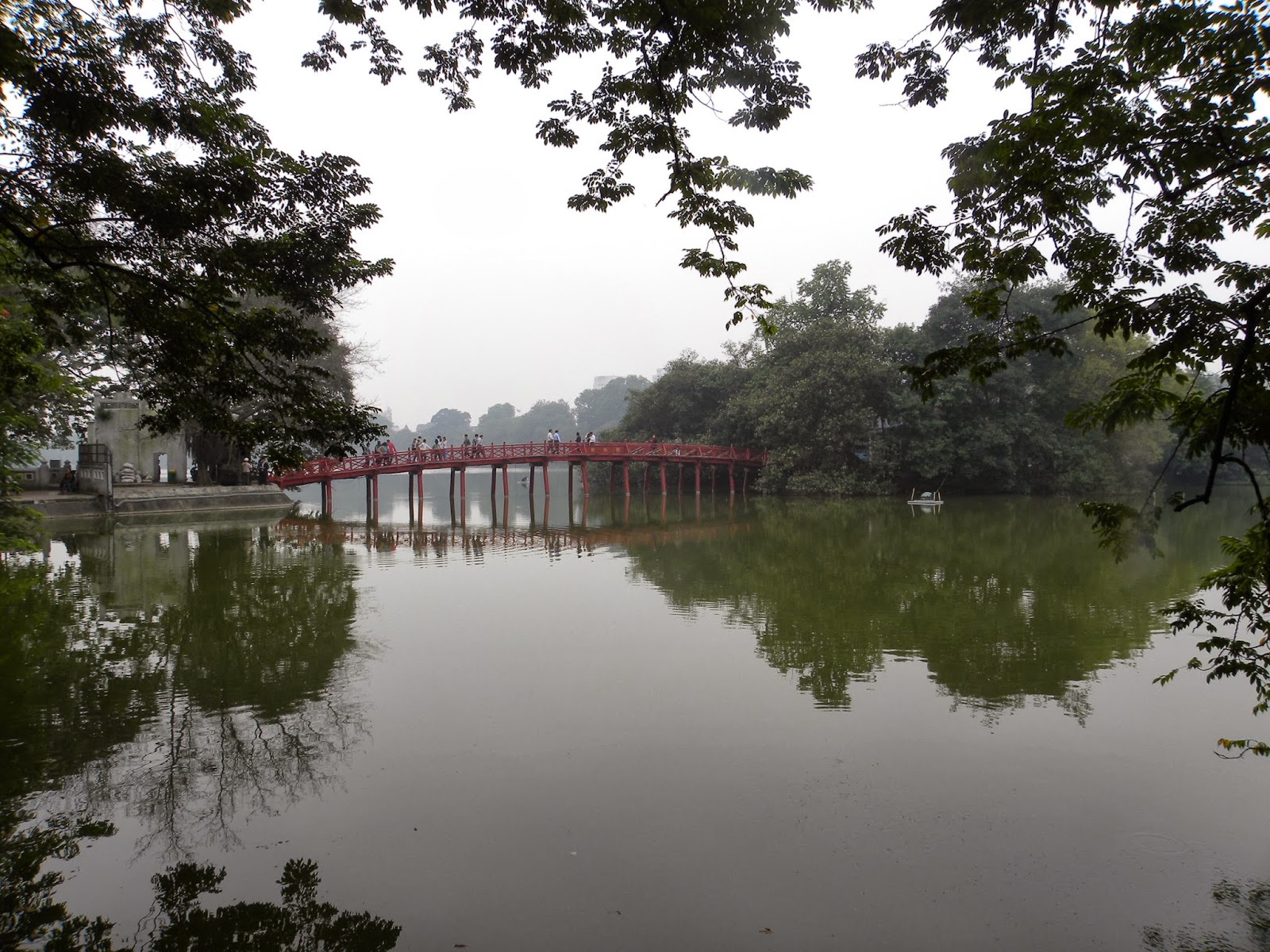 A poucos passos do hotel está o Hoan Kiem Lake, com uma bela ponte vermelha. No lago, encontramos o “Ngoc Son Temple“, templo budista com entrada a 20.000 dongues.