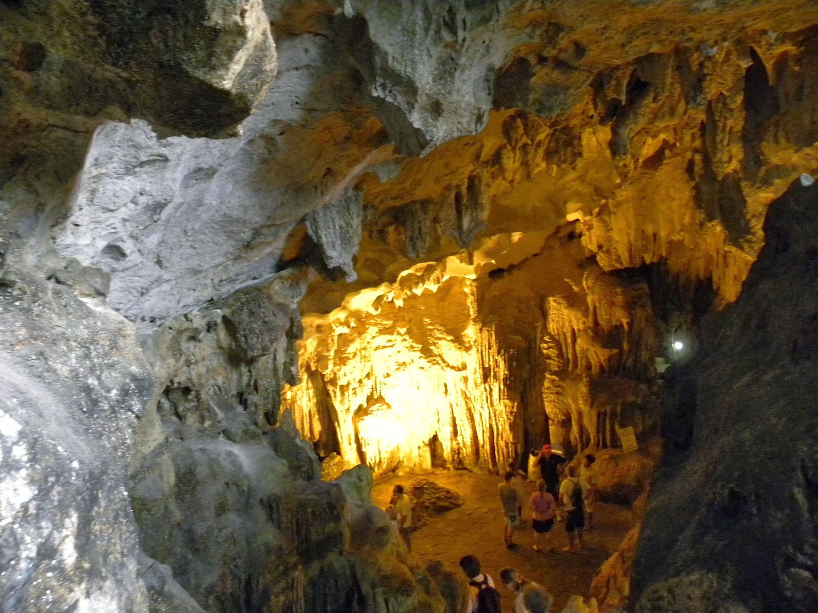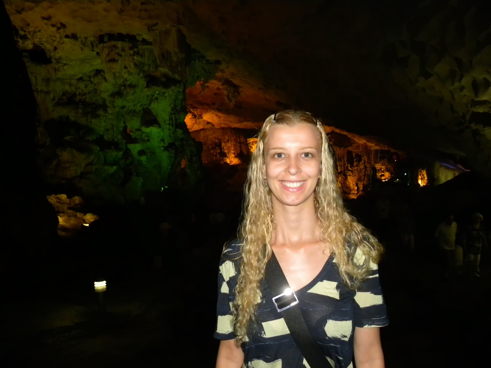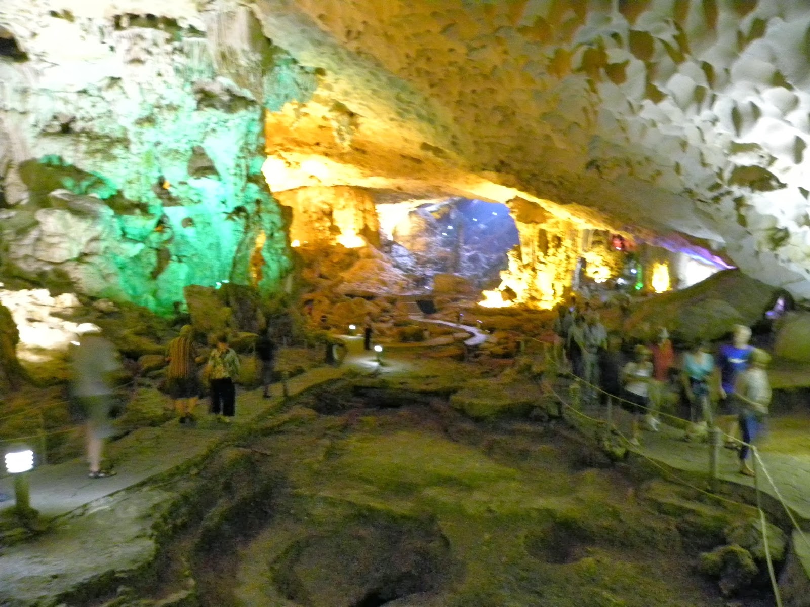 Logo após um rápido banho, conheceria um dos lugares mais fantásticos do passeio: Thien Cung Cave. É uma caverna cinematográfica, acessível apenas de barco, com uma iluminação colorida e completamente repleta de turistas. Infelizmente nenhuma foto conseguiu captar a magnitude do lugar. A visita durou cerca de 45 minutos.