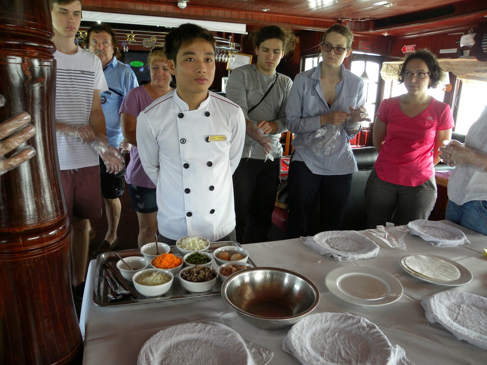 No dia seguinte, após o café da manhã vietnamita, entramos num bote para conhecer a “tunnel cave”, na volta, foi servido um almoço de despedida e tivemos aula de culinária. Aprendemos fazer o spring roll vietnamita. Retornamos ao porto e peguei o táxi direto para o aeroporto Noi Bai em Hanói. Próximo destino: Siem Reap, Camboja.