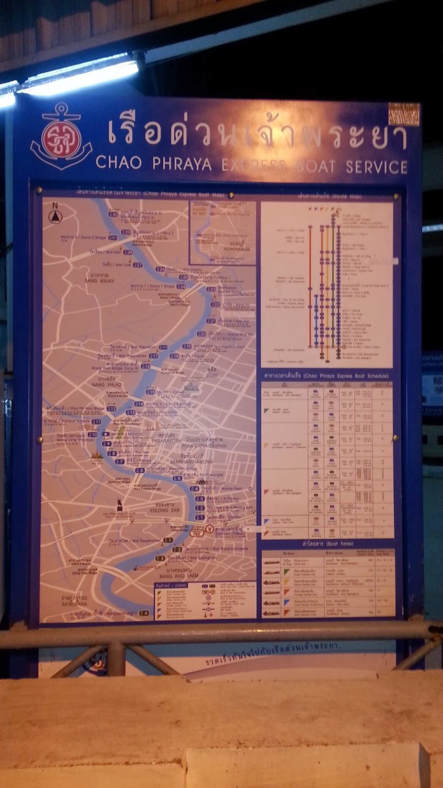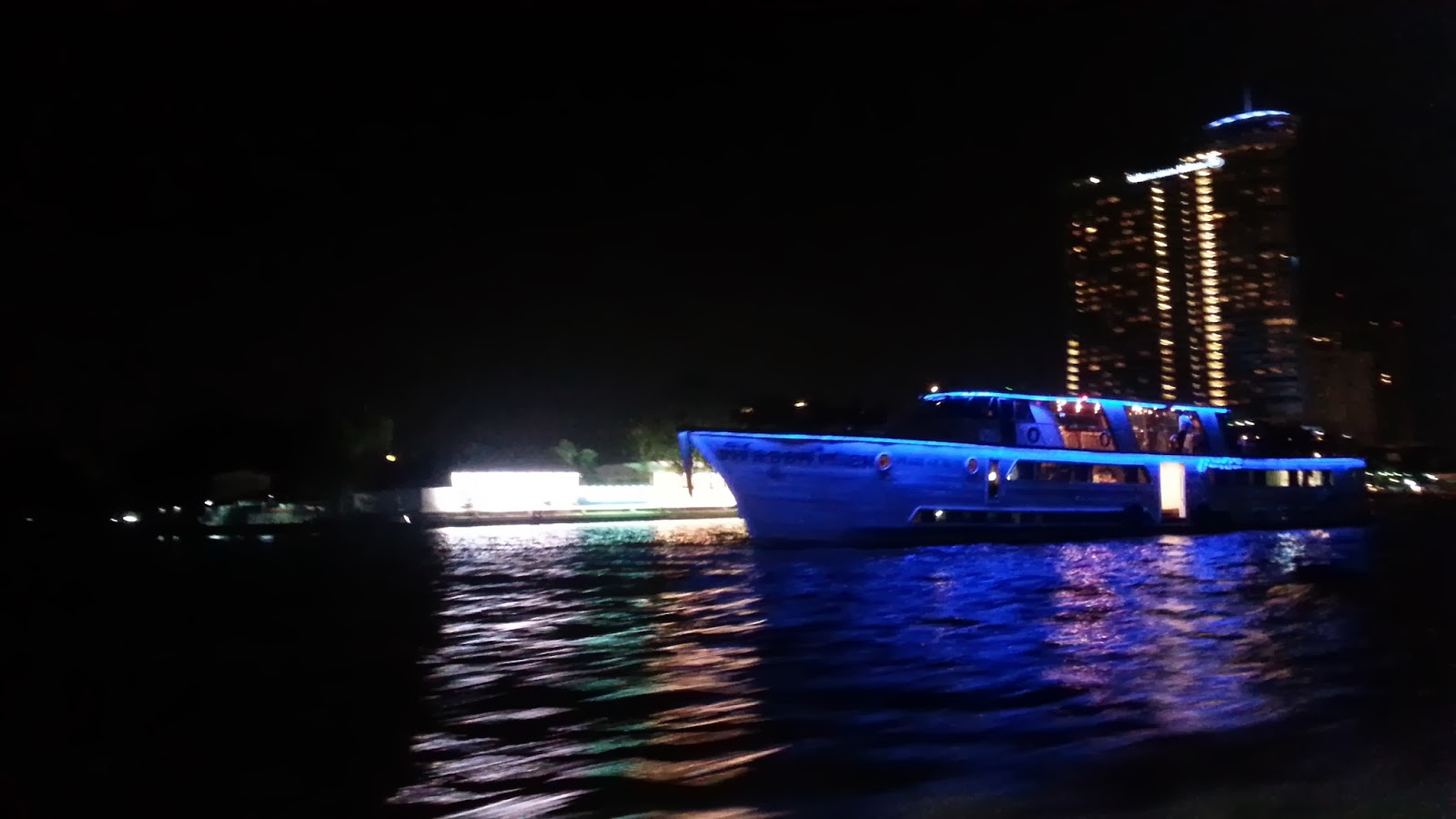 Na saída de lá, caminhei por 10 minutos até o Sathorn Pier (primeira parada da rota), para tomar o barco que conclui a viagem no píer próximo a Khao San Road, região mais agitada e turística. O passeio noturno de barco é imperdível, pois passa por vários monumentos e temos uma outra perspectiva citadina, além de ser muito barato, 40 baht.