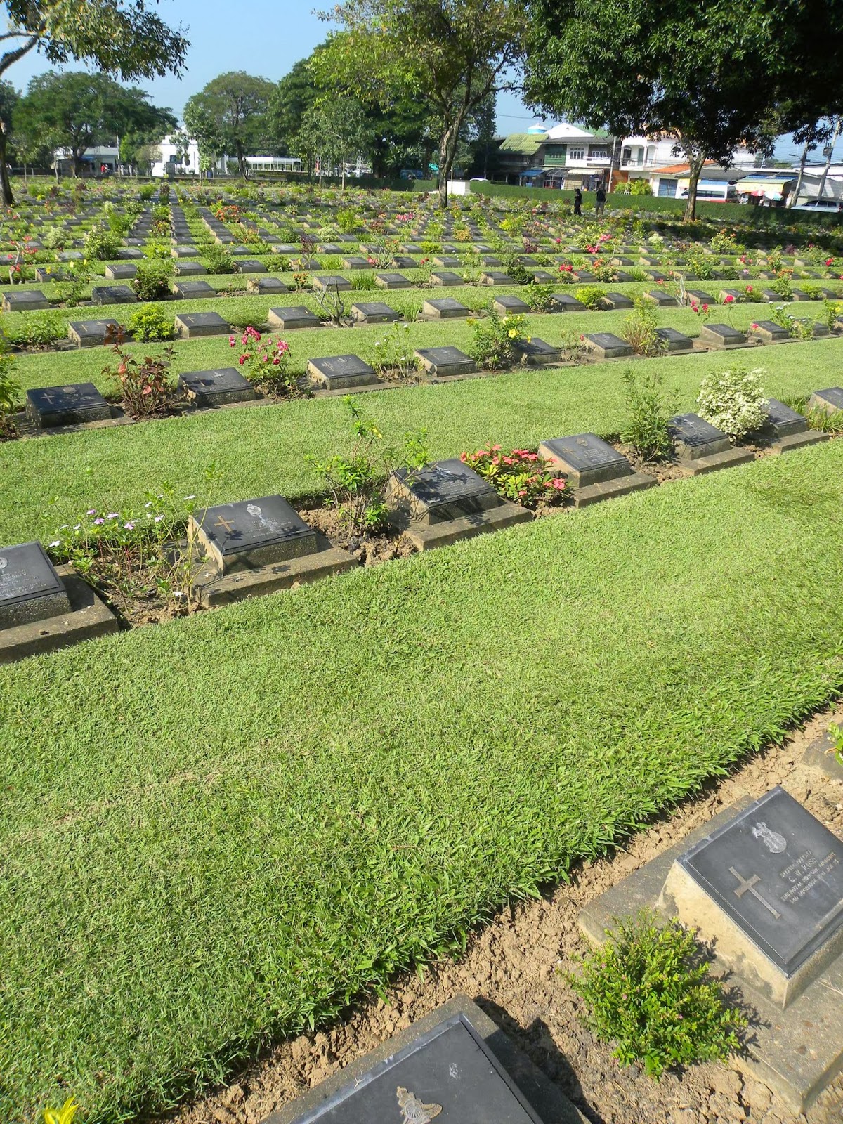 Por volta das 10 horas chegamos na cidade e a primeira parada foi no Cemitério da Guerra. O lugar contém os restos mortais de cerca de 7 mil prisioneiros de guerra mortos durante a construção da ferrovia da morte. É muito limpo e bem cuidado. Caminhei silenciosamente para ler algumas lápides.