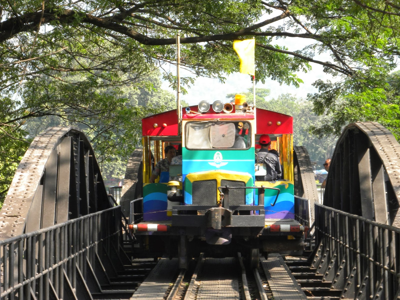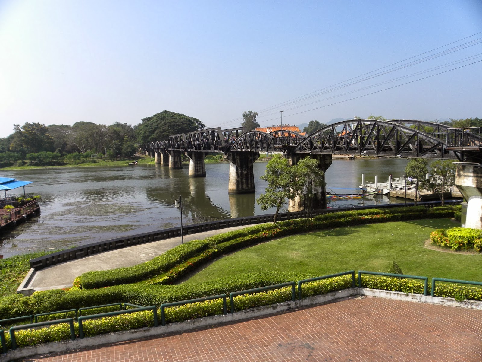 Depois seguimos para o Museu da Guerra. Optei por não fazer a visita e segui para a Ponte do Rio Kwai, cerca de 5 minutos do museu. Tinha aproximadamente 1 hora para caminhar pelo local. A ponte foi construída durante a Segunda Guerra Mundial, a mando dos japoneses, no meio da selva, como caminho estratégico até Burma. Hoje é um dos pontos turísticos do país.