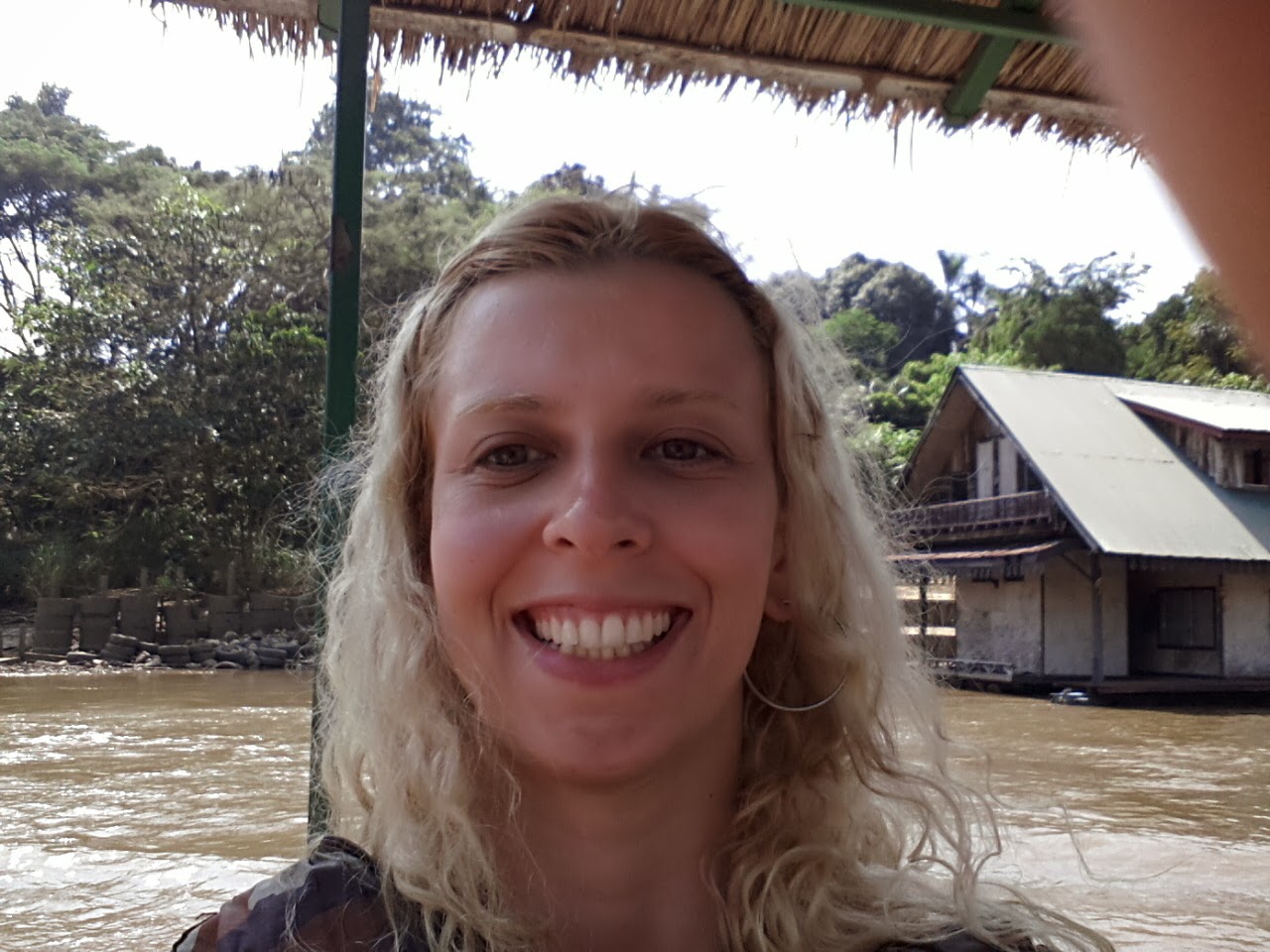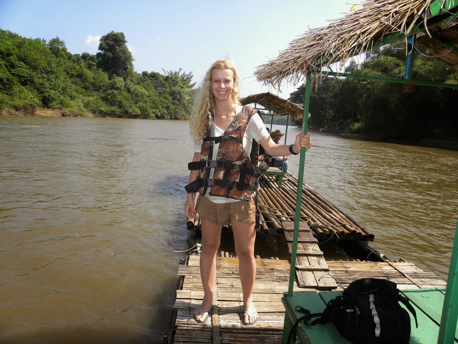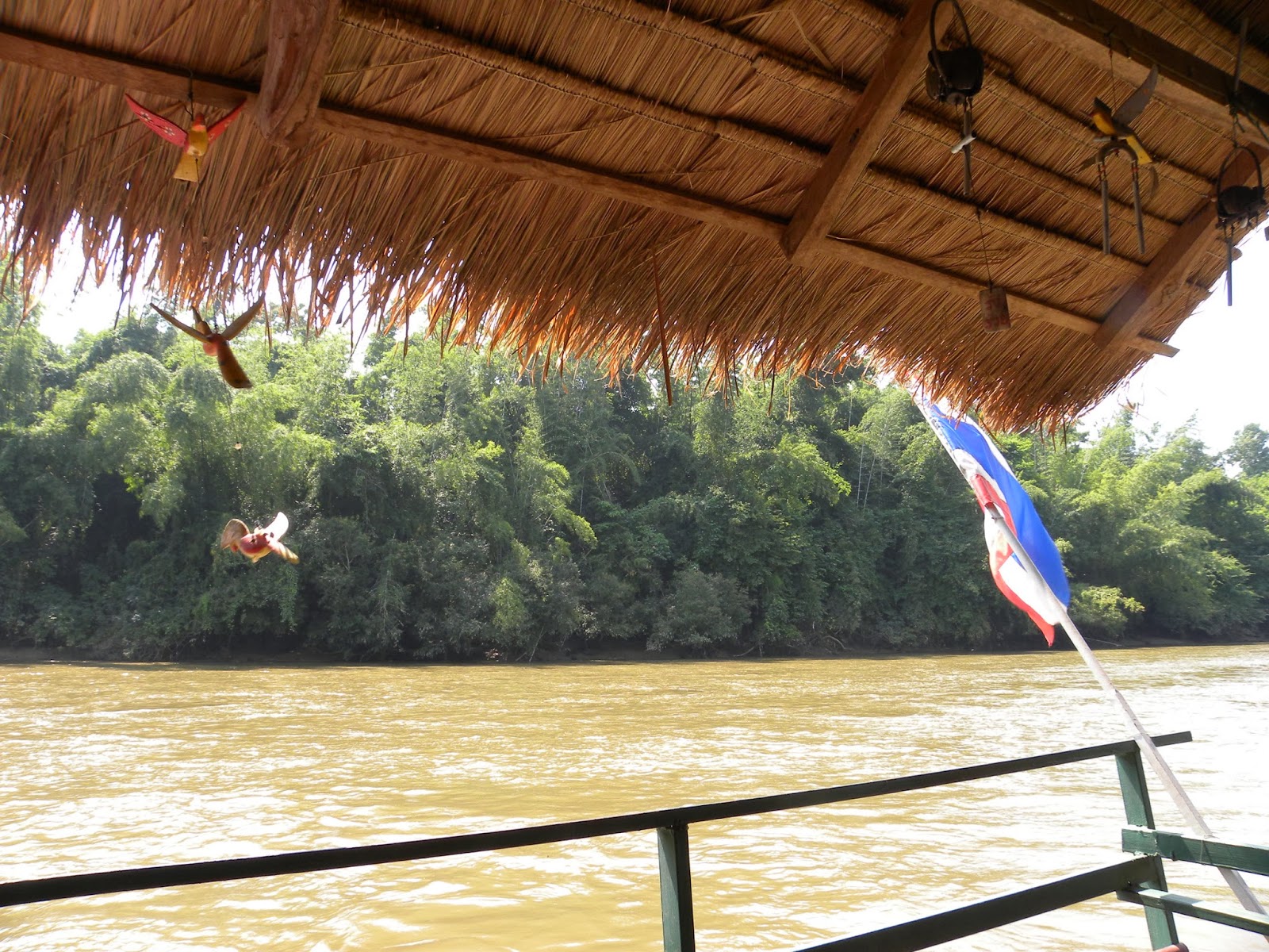 Perto dali, às margens do rio, ficava o restaurante que serviria o almoço. Só as bebidas eram pagas. A comida servida nos passeios era basicamente a mesma e não me impressionava muito, me obrigando a uma dieta forçada. Serviam arroz e salada. Após a refeição, teve o “Bamboo rafting“, ou seja, um passeio pelo rio a bordo de uma embarcação feita de bambu. Quase aconteceu um desastre, pois o barco que estava afundou até a metade. Sim, estava de colete, mas não nado e a situação me preocupou um pouco (risos).