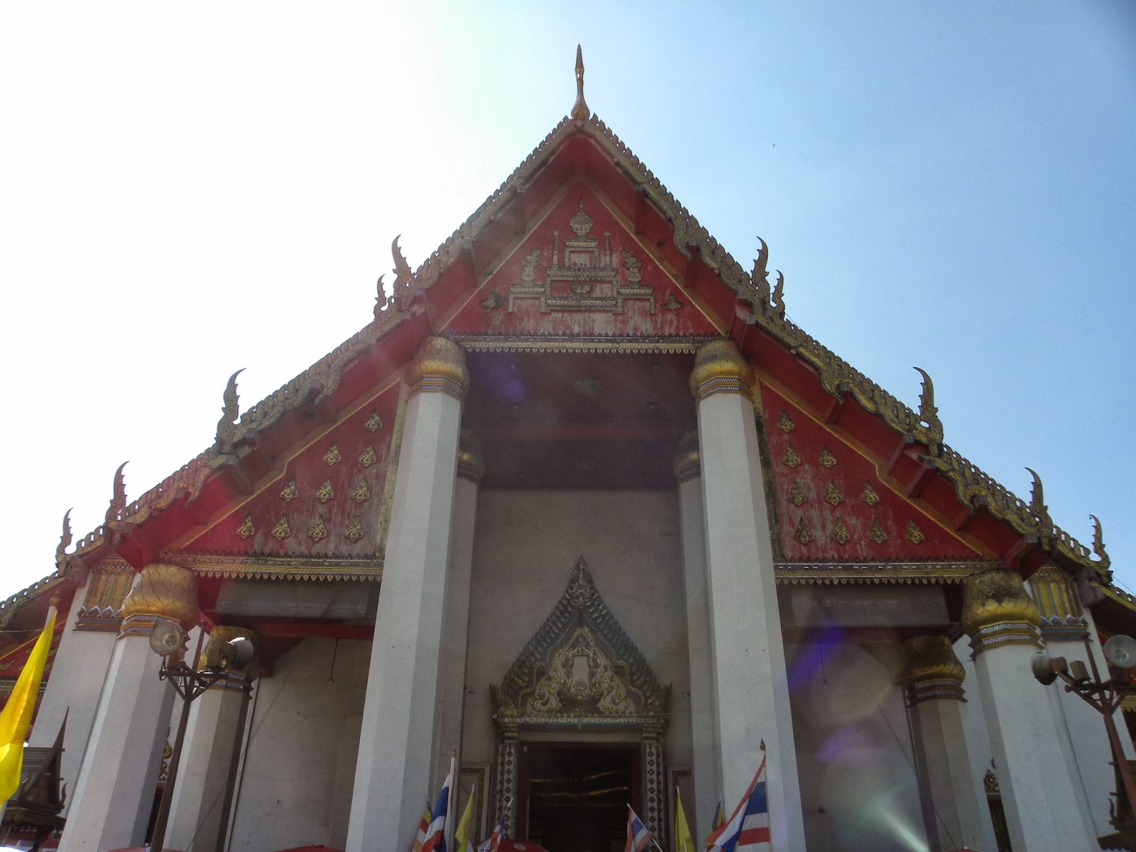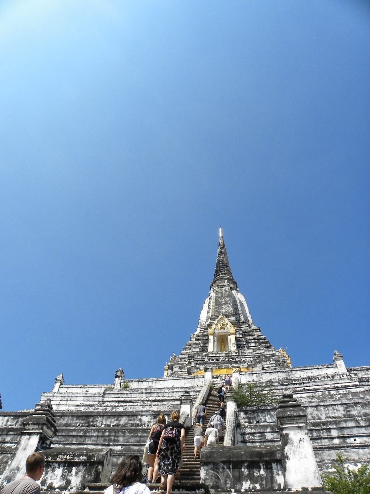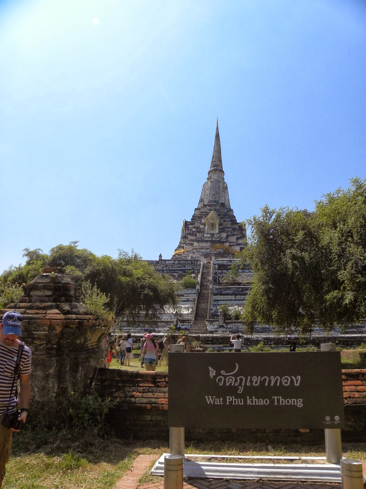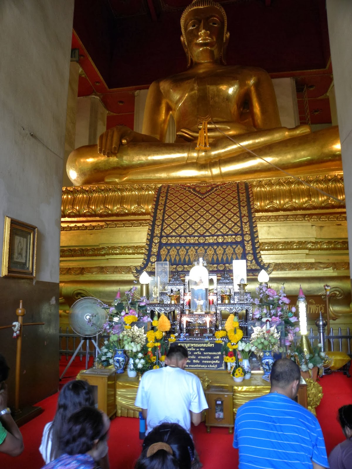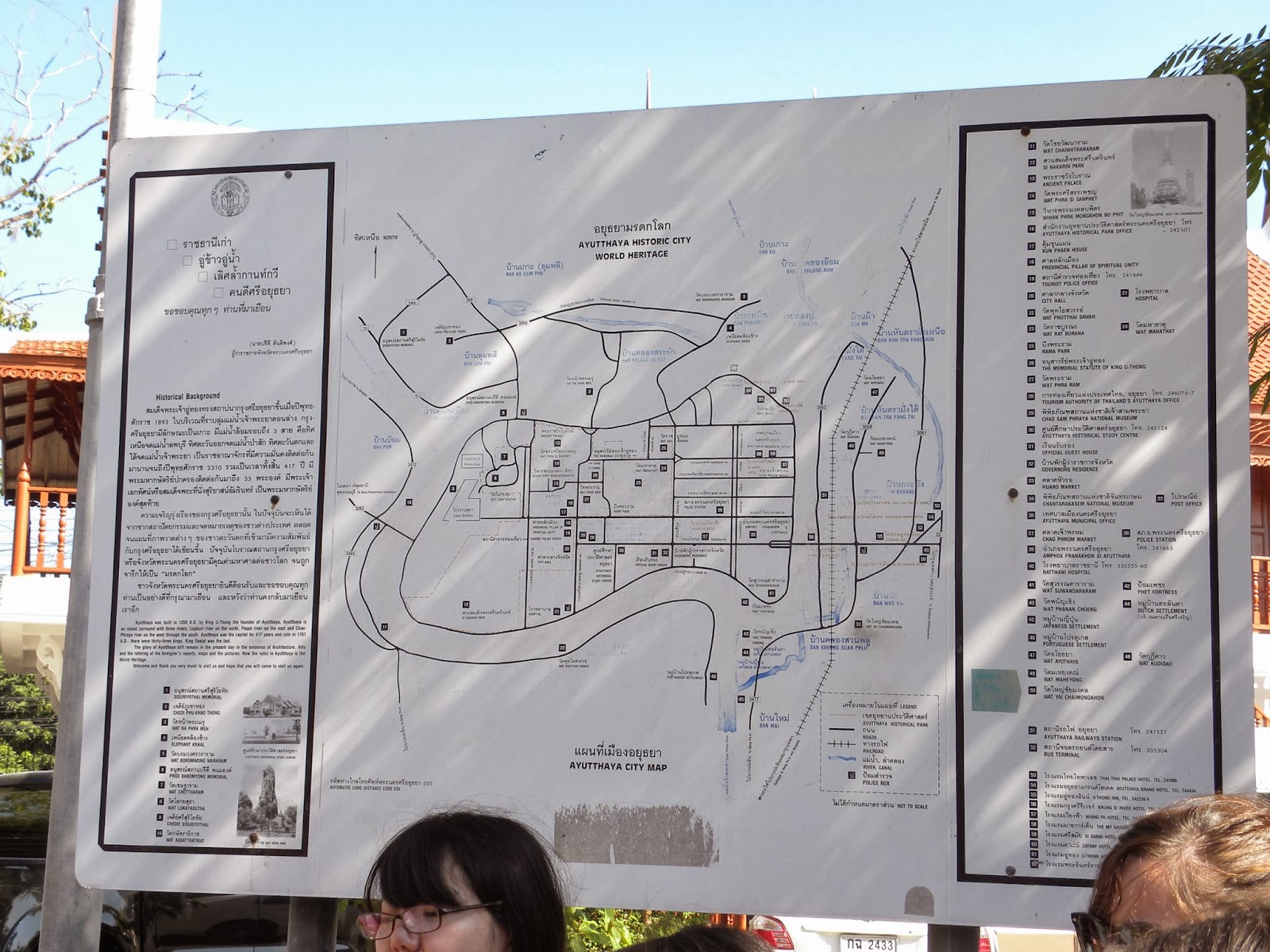 É possível chegar na cidade de ônibus, trem, barco, van, mas optei por comprar um pacote na Khao San Road, como comentado no post anterior, por 750 baht – ótimo preço se compararmos com os praticados nas agências consultadas na internet. A van buscou os passageiros às 6 horas no hotel, para iniciarmos o tour às 7 horas. Recomendo o passeio contratado, pois os templos ficam afastados um dos outros e é complicado alcançá-los caminhando.