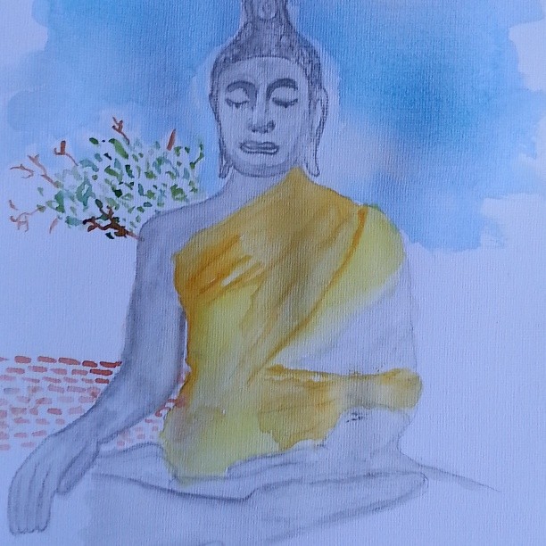 Buddha diante do Phra Chedi Chaimongkol, 1357. |
