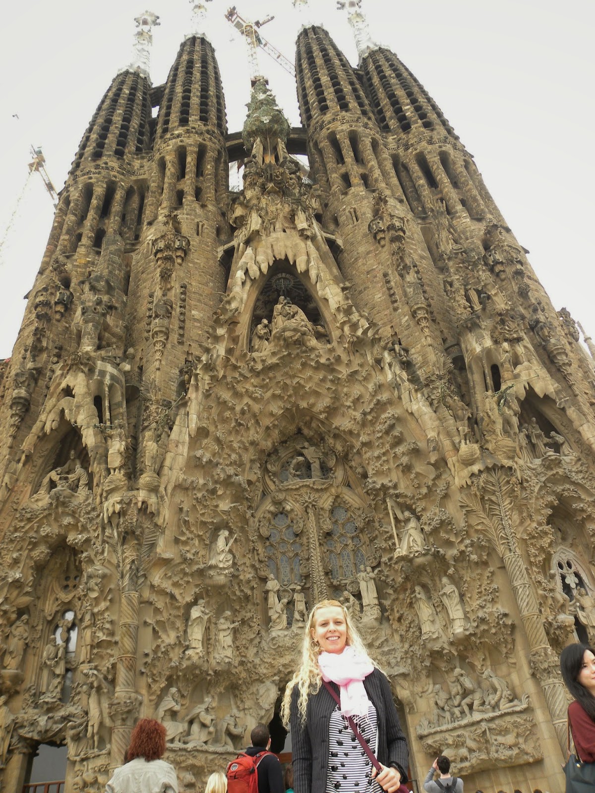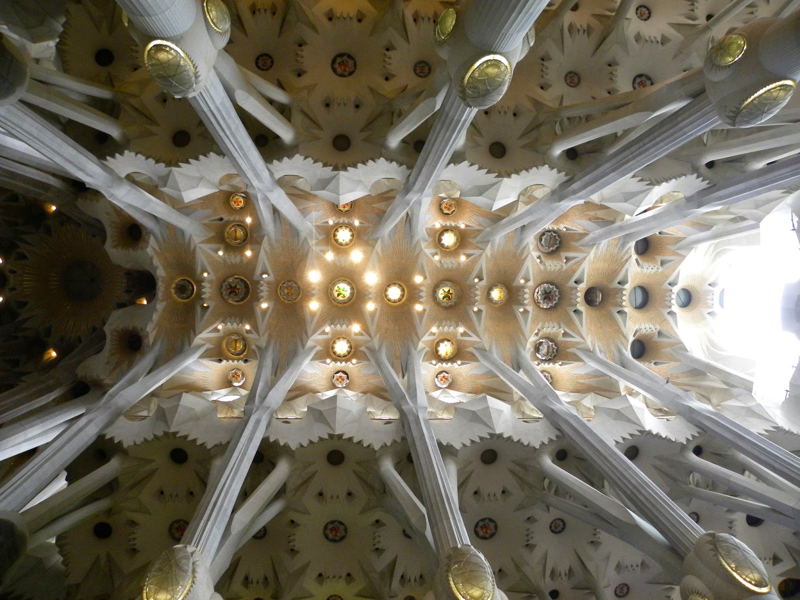 A igreja de Gaudí é, sem dúvida, uma das coisas mais bonitas que já vi em toda a minha vida. De tirar o fôlego de qualquer um. Emociona e deslumbra. Gaudí, ao assumir a obra, remodelou o antigo estilo neogótico, imprimindo então suas características na construção. Tudo chama a atenção do espectador: as torres, os vitrais, as colunas e a sensacional abóbada!
