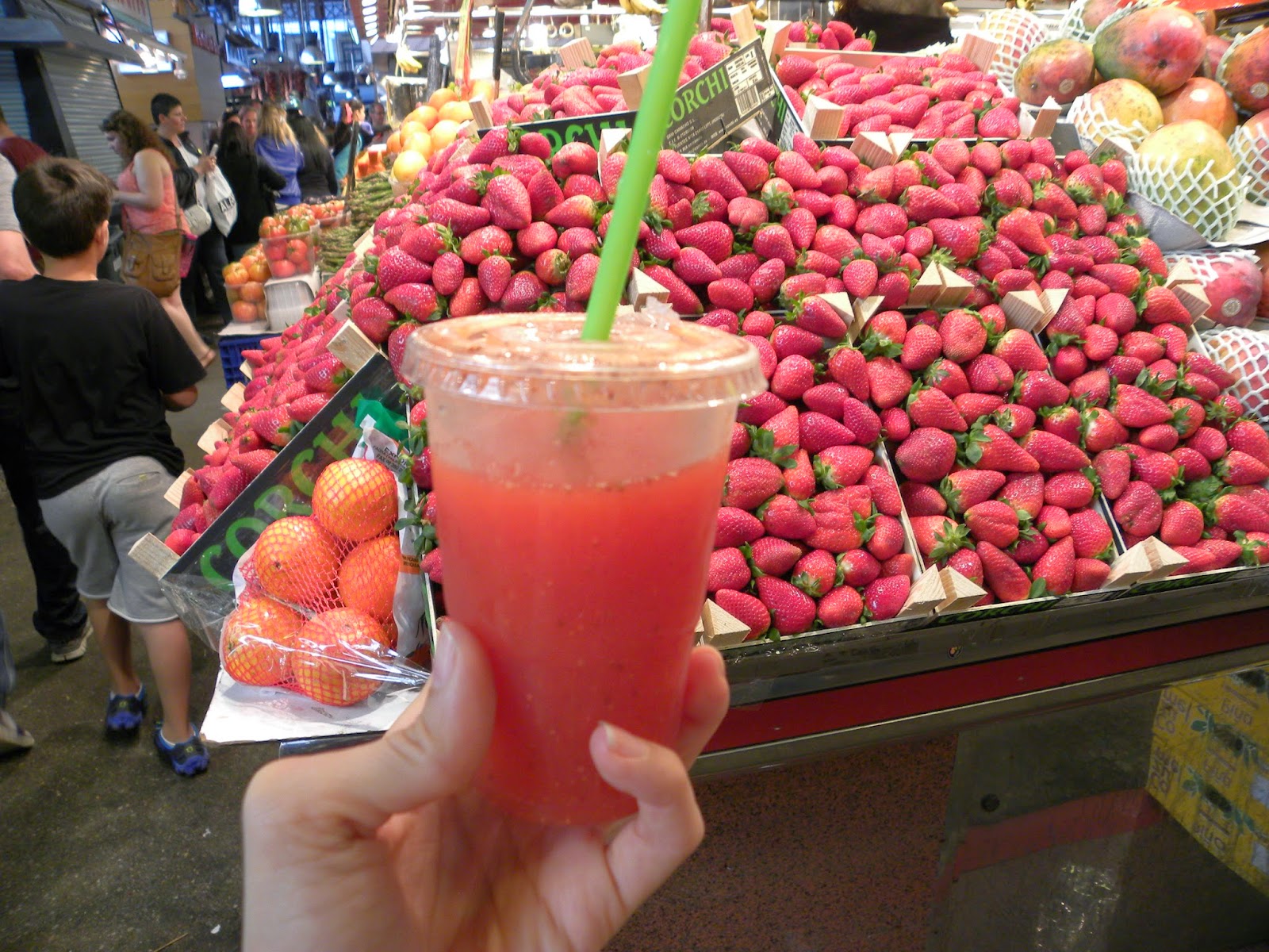 Após um demorado banho segui para o Mercat de Sant Josep – La Boqueria. A primeira coisa que constatei é que tudo está escrito em catalão, com tradução em inglês e espanhol. Mas estranhamente consegui ler as placas e informações na língua catalã. La Boqueria foi o primeiro mercado municipal da cidade e funciona no antigo convento de São José. É uma atração imperdível. Sucos, frutas, jamón ibérico (o famoso presunto), artesanatos.