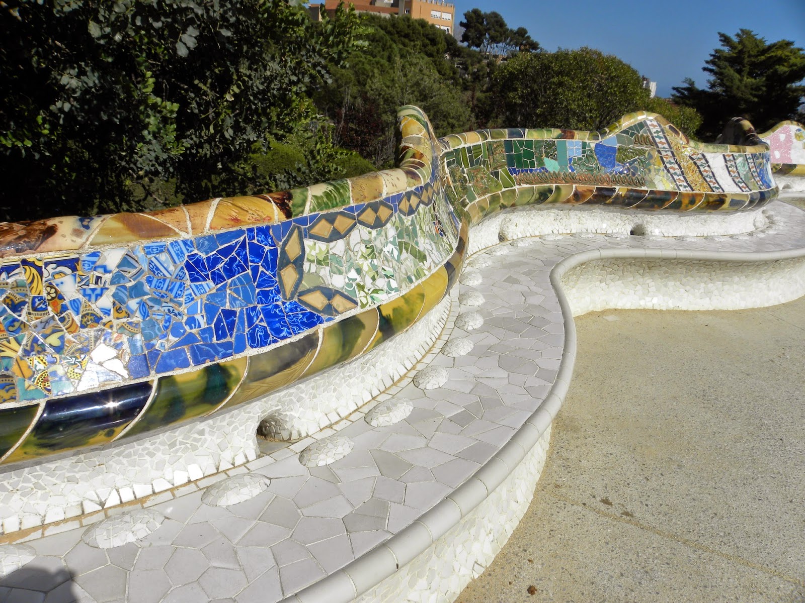 Depois peguei o metrô rumo à estação Vallcarca, mais próxima do Park Güell. Meu maior arrependimento foi não ter comprado o tíquete na internet (7 euros). Olhei e pensei “Nunca um parque vai esgotar os bilhetes”. Depois de uma longa caminhada subindo escadas, cheguei ao parque, que é imenso, andei, andei e encontrei a principal construção. Na bilheteria fui informada que só tinha ingresso para 16 horas!!! Esperei por mais de 2 horas, que arruinou parte da minha programação.