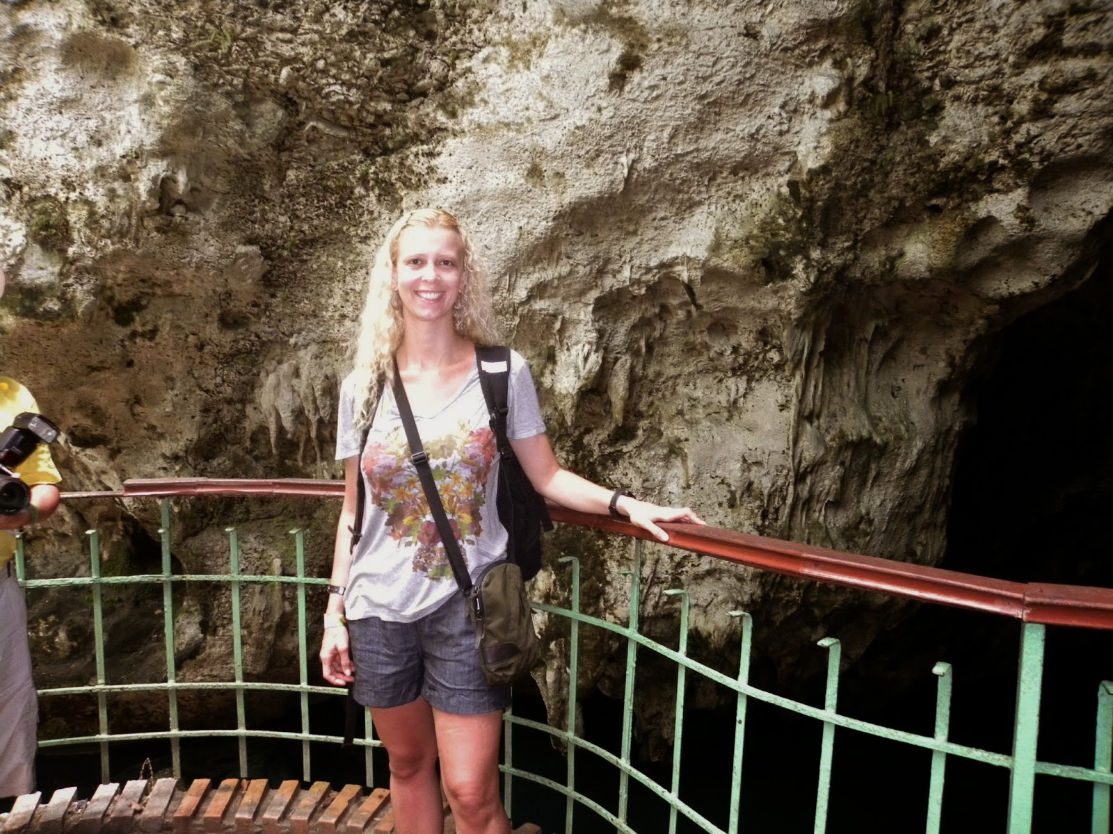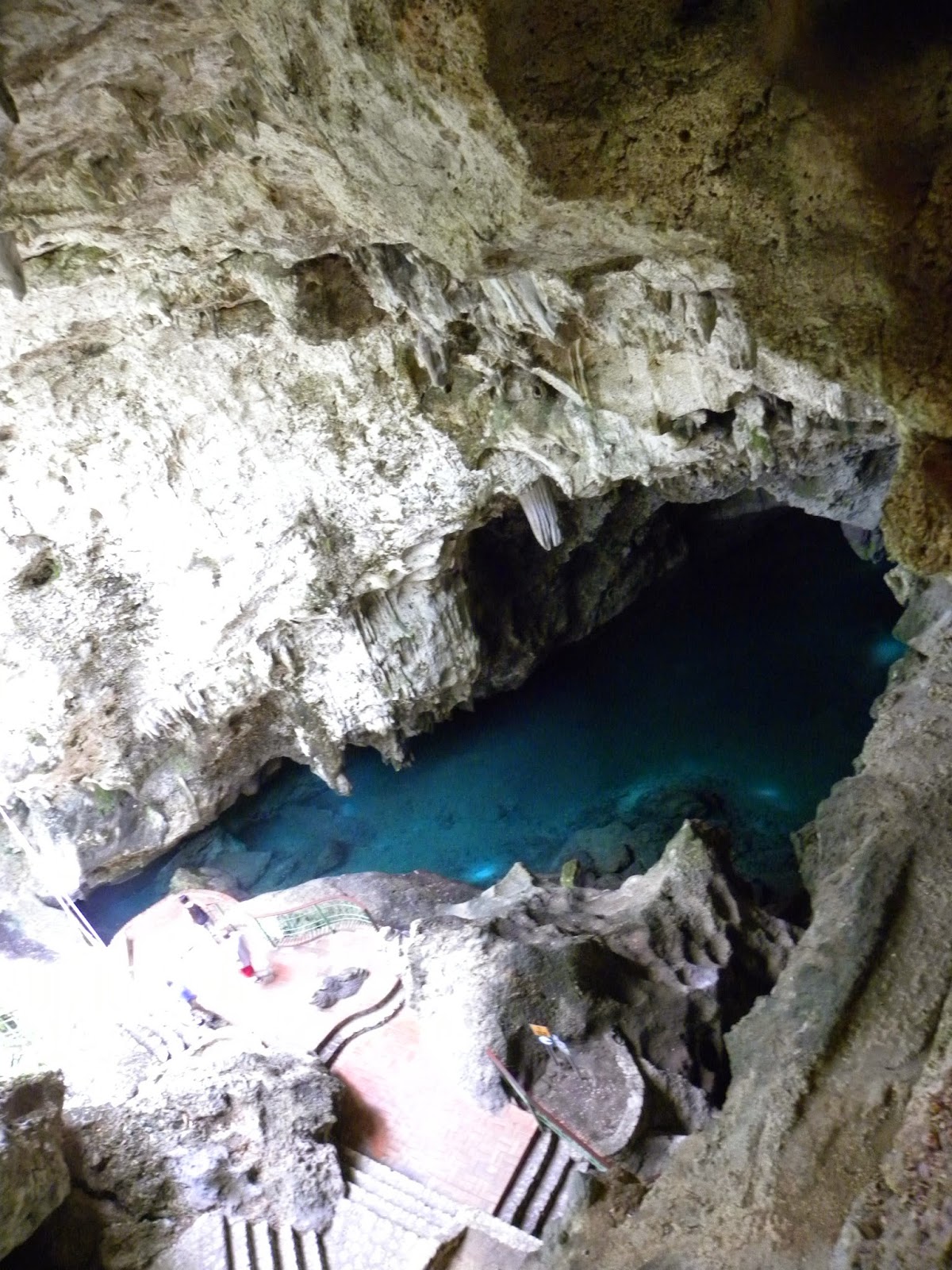 Já em Santo Domingo, a primeira parada foi no Parque Nacional Los Tres Ojos. É uma caverna com três lagos de água doce. Tem uma coloração azul. Existe ainda uma balsa que leva no quarto lago, que fica numa parte interna da caverna, mas precisa ser agendado. O valor do ingresso, já incluso no passeio, era de 100 pesos. Tem dezenas de vendedores que abordam os turistas insistentemente. O guia do parque levou o grupo e no fim queria propina! Claro que não dei. Eles fazem pressão psicológica.
