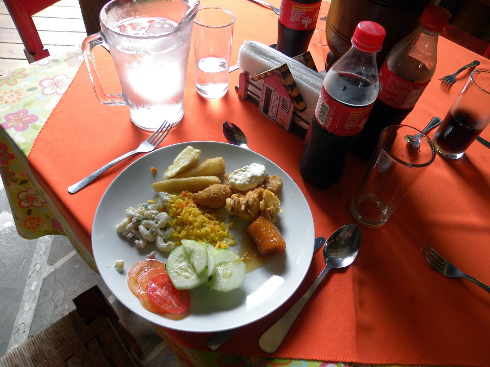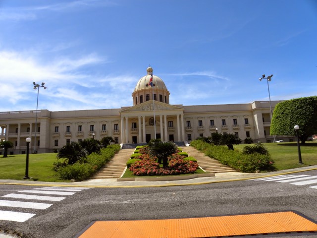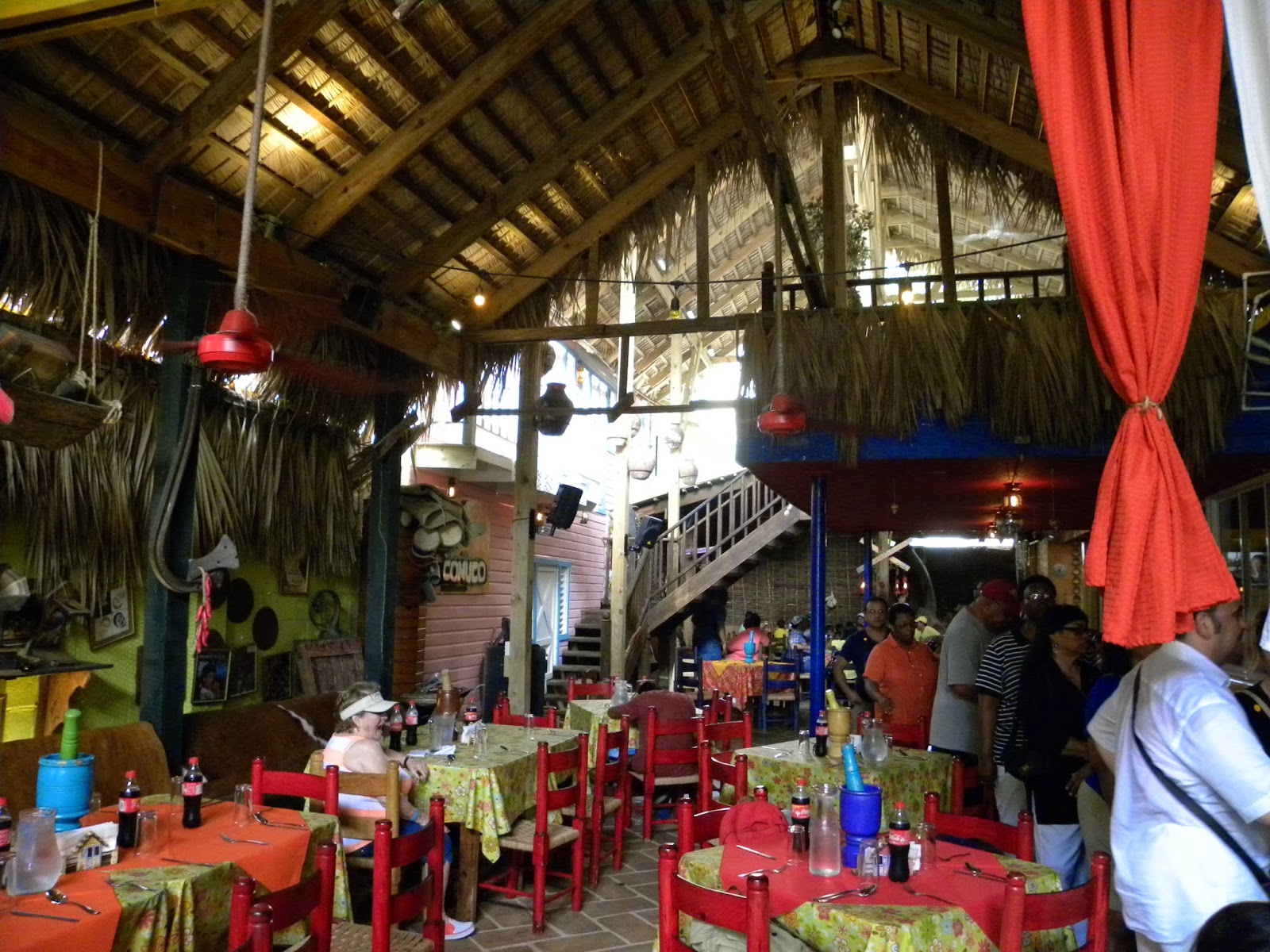 Na parte moderna da cidade, paramos na sede presidencial para tirarmos fotos. Depois era a hora do almoço. Seguimos para o restaurante “El conuco“. Tinha uma decoração temática, com apresentação de dança típica e comida em sistema de self-service. O prato típico daquele país é “a bandeira”, ou seja, arroz, feijão, salada e carne. Idêntico ao nosso. No restaurante tinha aipim frito, banana em calda, arroz, macarronese, filé de peixe, frango, salada, feijão. O guia contou que dominicanos gostam de carne, praticamente não comem peixe, embora estejam uma ilha.