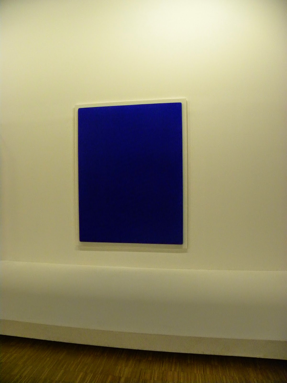 Para finalizar a tríade, entretanto, sem encerrar um rol crescente de espantos, destaco a obra do francês Yves Klein, precursor do movimento Novo Realismo, que é um dos artistas que mais me encantam na História da Arte. Seus trabalhos monocromáticos executados com o azul patenteado “International Klein Blue” são exuberantes. Telas pintadas por pinceis vivos ou tradicionais, que pude fruir nos museus de Paris, Amsterdã ou Berlim, ficaram em mim como tatuagens. Segundo Klein, “Sentir a alma, sem ter de explicar por palavras, e representar esta sensação foi, julgo eu, uma das razões que conduziram à monocromia.”Gostaria de ter o talento de um ensaísta para eternizar o azul extraviado no mundo longínquo que o verde dos meus olhos pode gravar na minha memória, no entanto, pela inexistência de tal capacidade, deixo apenas um registro.