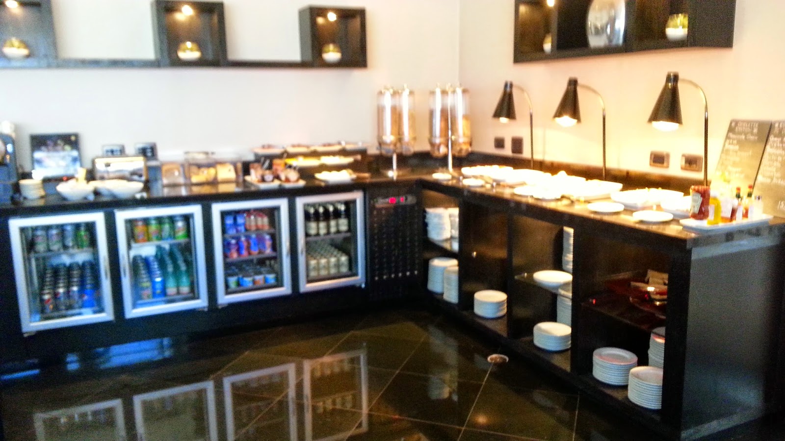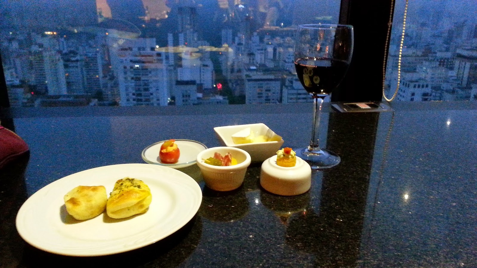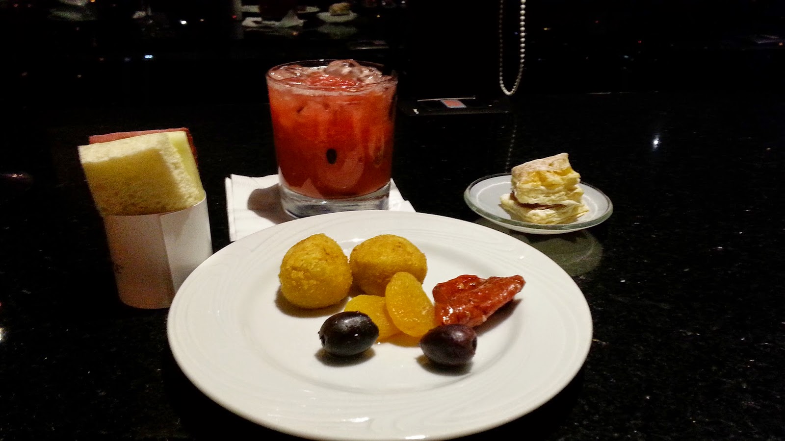 Chegando no hotel, tirei o casaco molhado e fui conhecer o Lounge no 23º andar. Existe uma seleção enorme de petiscos, salgadinhos, sanduíches. Vinho, espumante, máquina Nespresso. Geladeira com refrigerante, água, iogurte, chá. Além de uma barmaid fazendo drinks na hora. A Margareth é super simpática e me ofereceu bebidas com saquê e melancia, saquê, abacaxi e limão. Todos deliciosos. O lounge tem um dos ambientes mais agradáveis que já vi em um hotel.