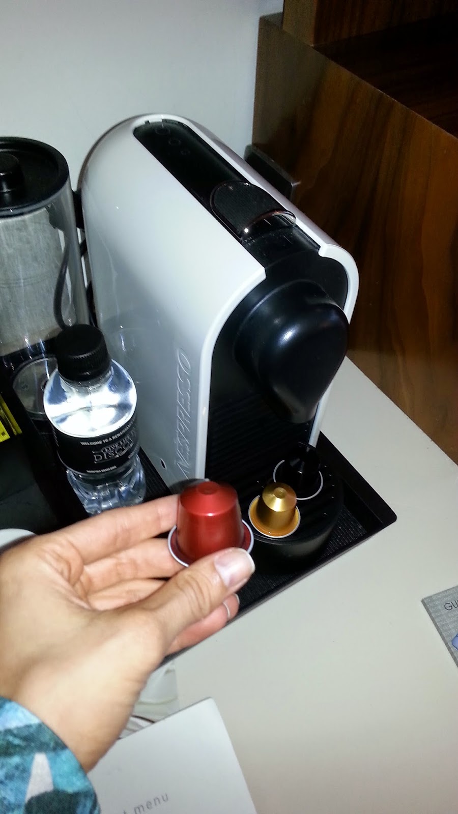 Chegando no quarto ainda tinha outro mimo: máquina Nespresso com várias cápsulas. Deixei minha bagagem e fui almoçar no Shopping na Av. Paulista. Depois peguei o metrô até a estação Paraíso. Lá desci e chovia. Depois de pedir informação, finalmente encontrei o ponto do ônibus que me deixaria no Ibirapuera.