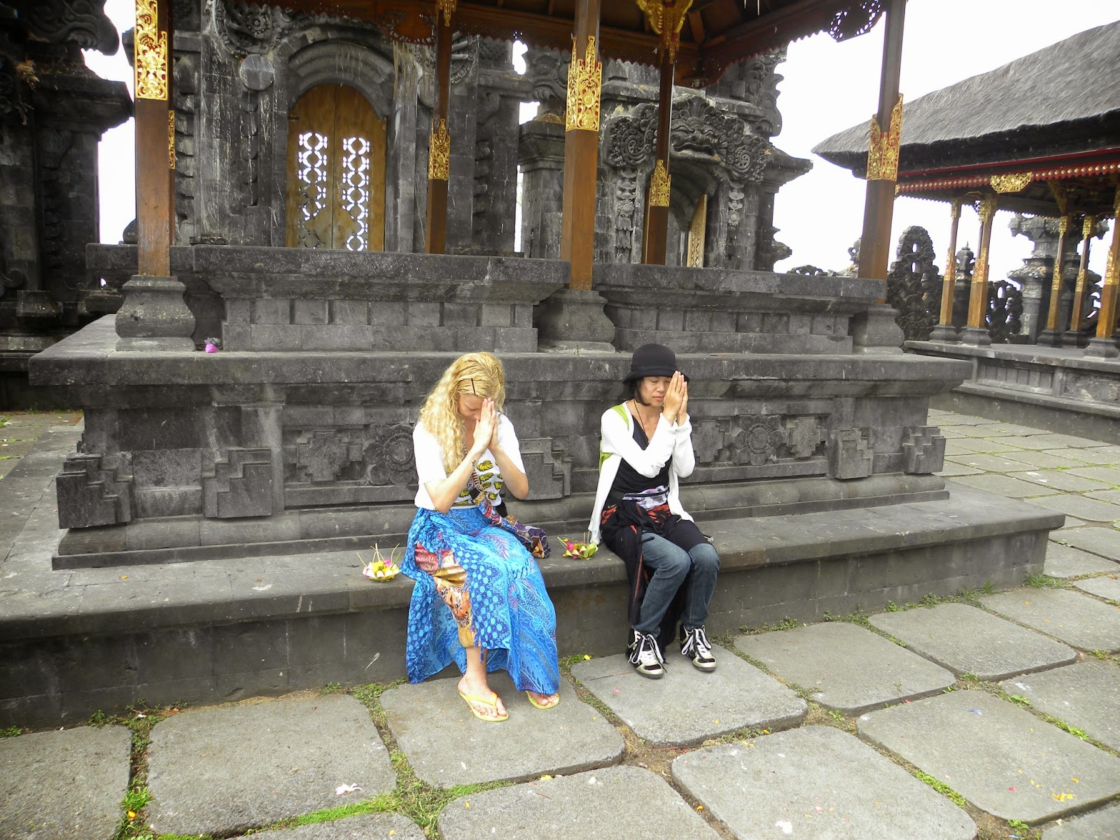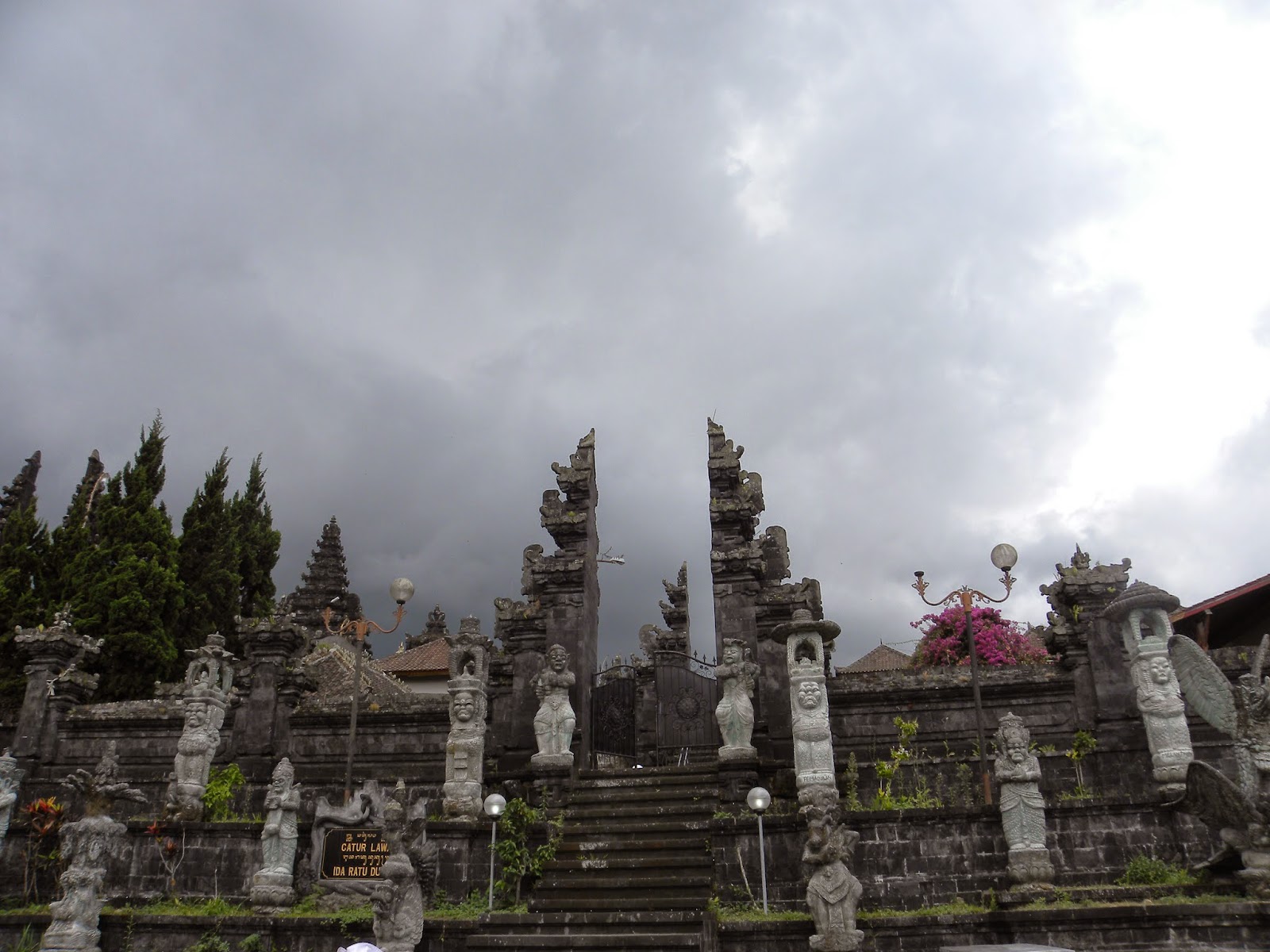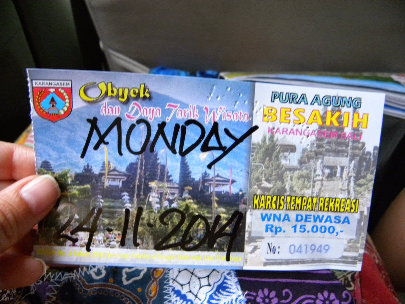 Logo no início fomos avisados pelo motorista que, ao contrário dos demais pontos turísticos em Bali, por algum motivo desconhecido, as pessoas em Besakih eram muito rudes e que tentariam a todo custo cobrar outro valor além do ingresso. O ingresso custou 15.000. Caminhamos e lá estava o templo, com inúmeros homens oferecendo o serviço como guia. Falam que sem guia é impossível subir e visitar o templo. As alemãs quase choraram e voltaram para o carro.