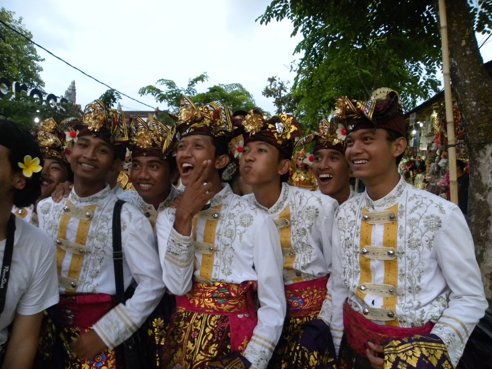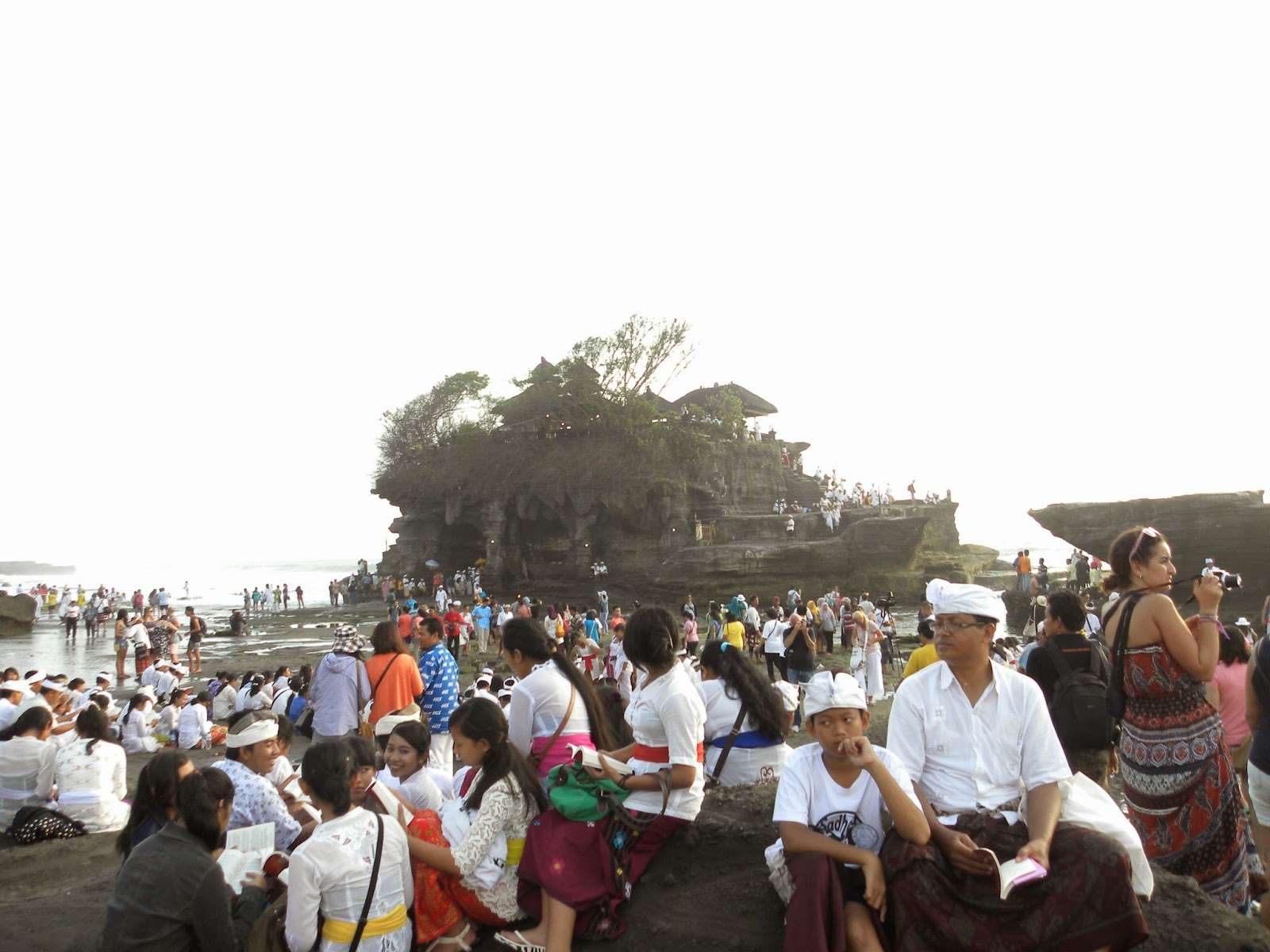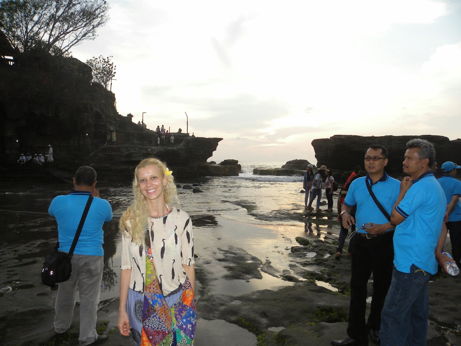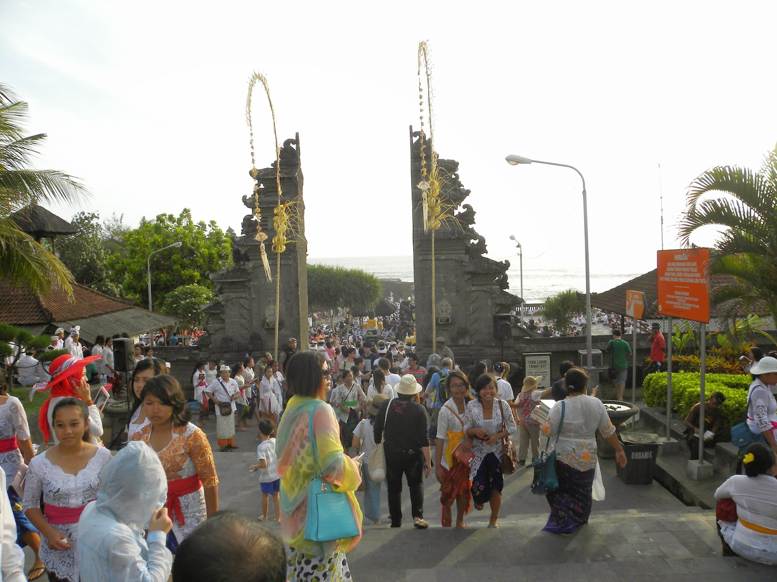 No retorno, nos deparamos com um desfile oficial com garotos e garotas fantasiados para alguma apresentação. Não entendi exatamente o que estavam comemorando, pois o motorista apenas informou que era um dia especial e também não encontrei informações na internet. No complexo de Tanah Lot é possível encontrar inúmeras lojas de artesanatos e comidas. No estacionamento nos deparamos com dezenas de ônibus, realmente, não era um dia qualquer em Tanah Lot.