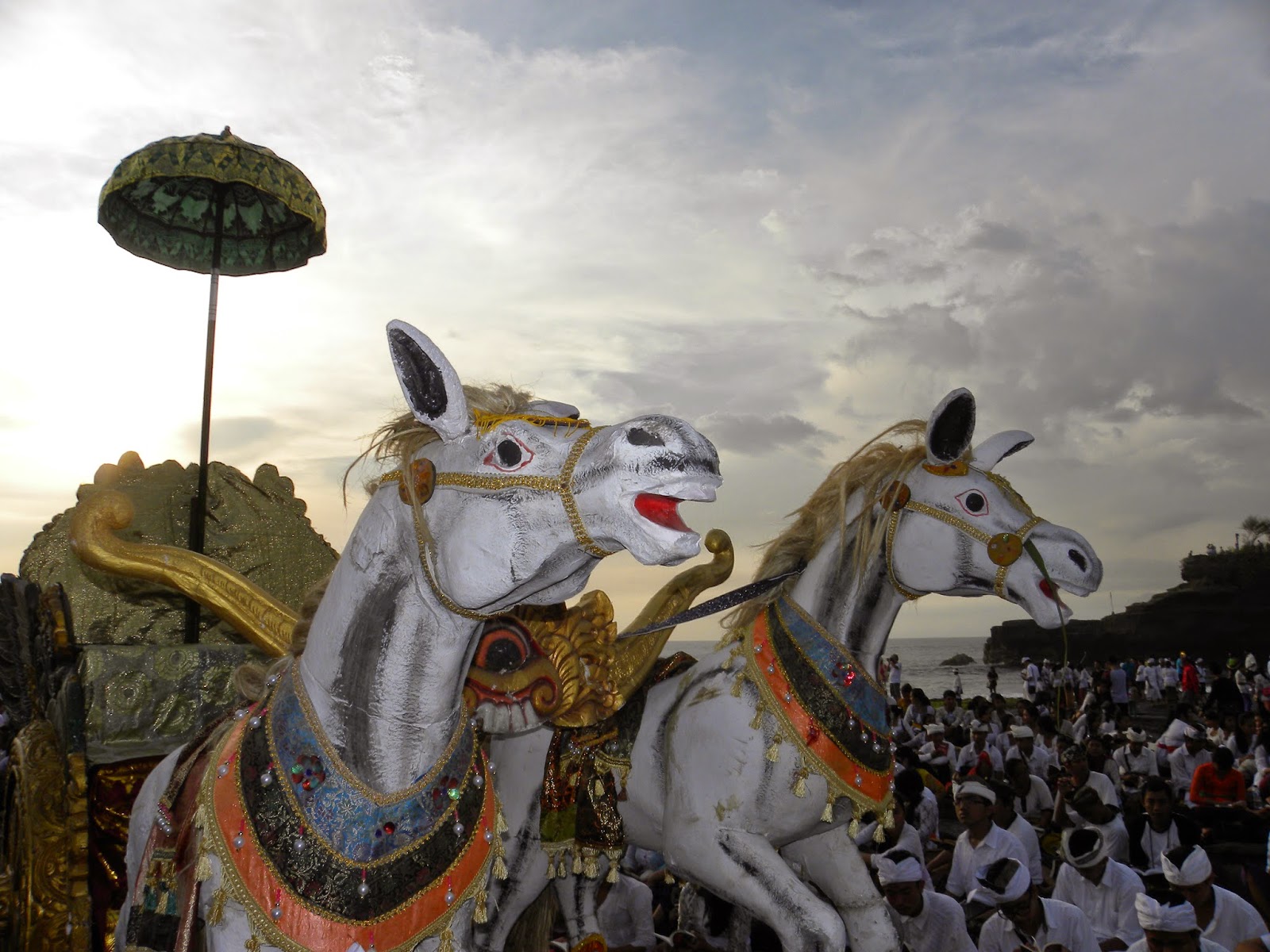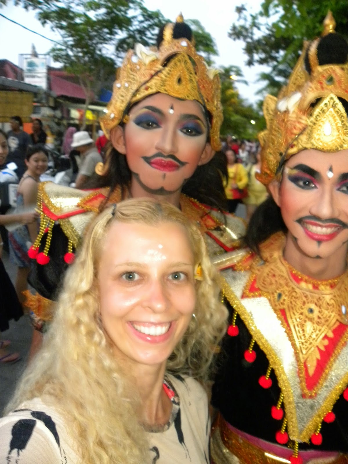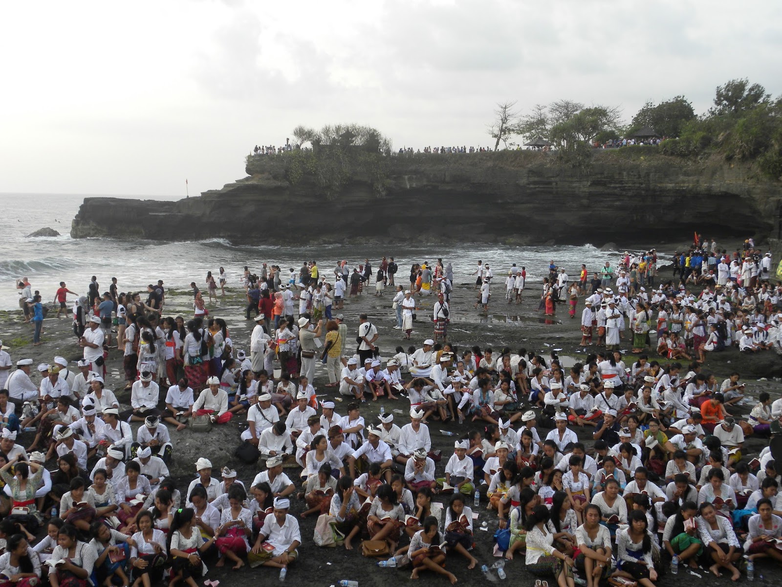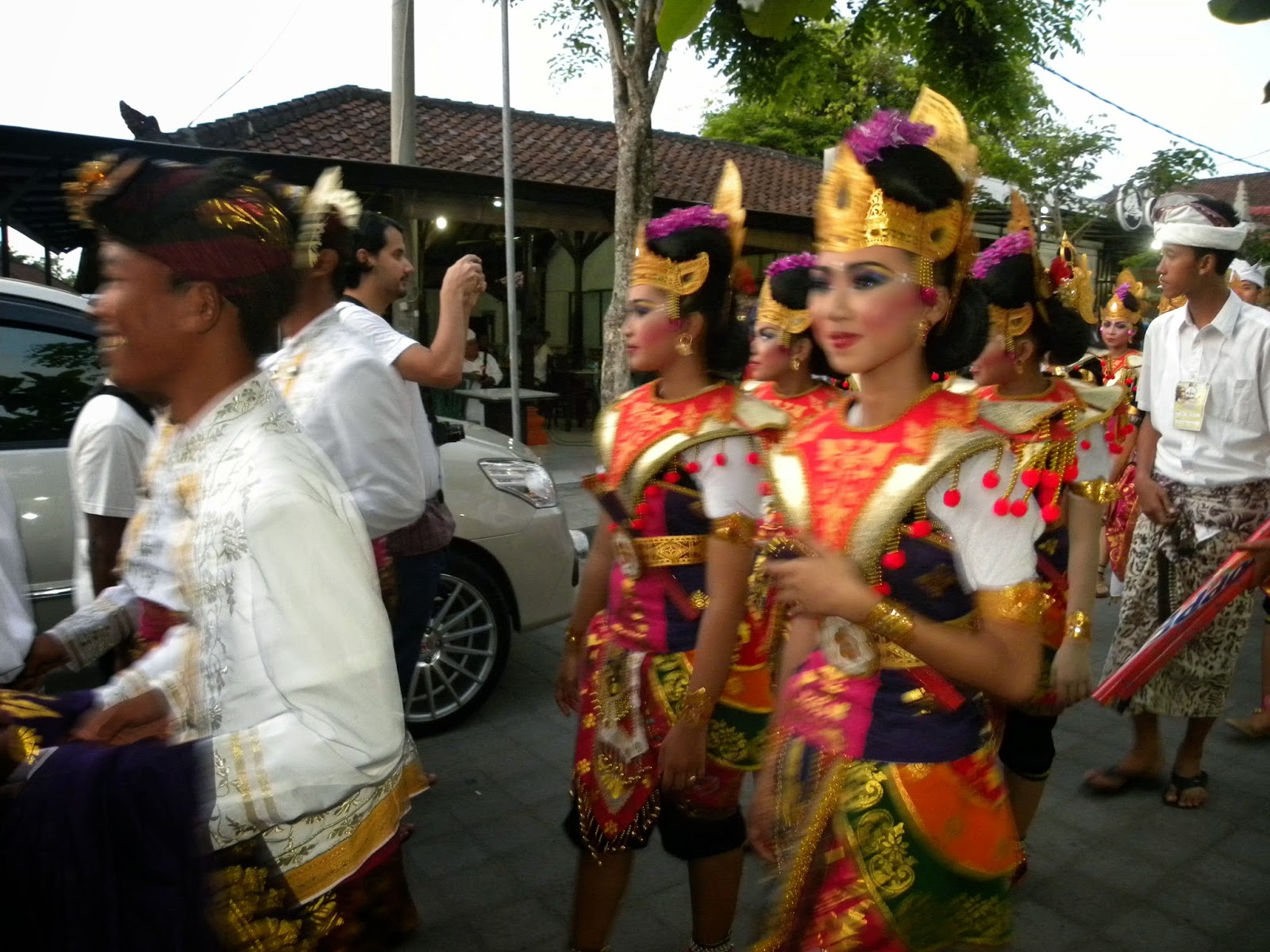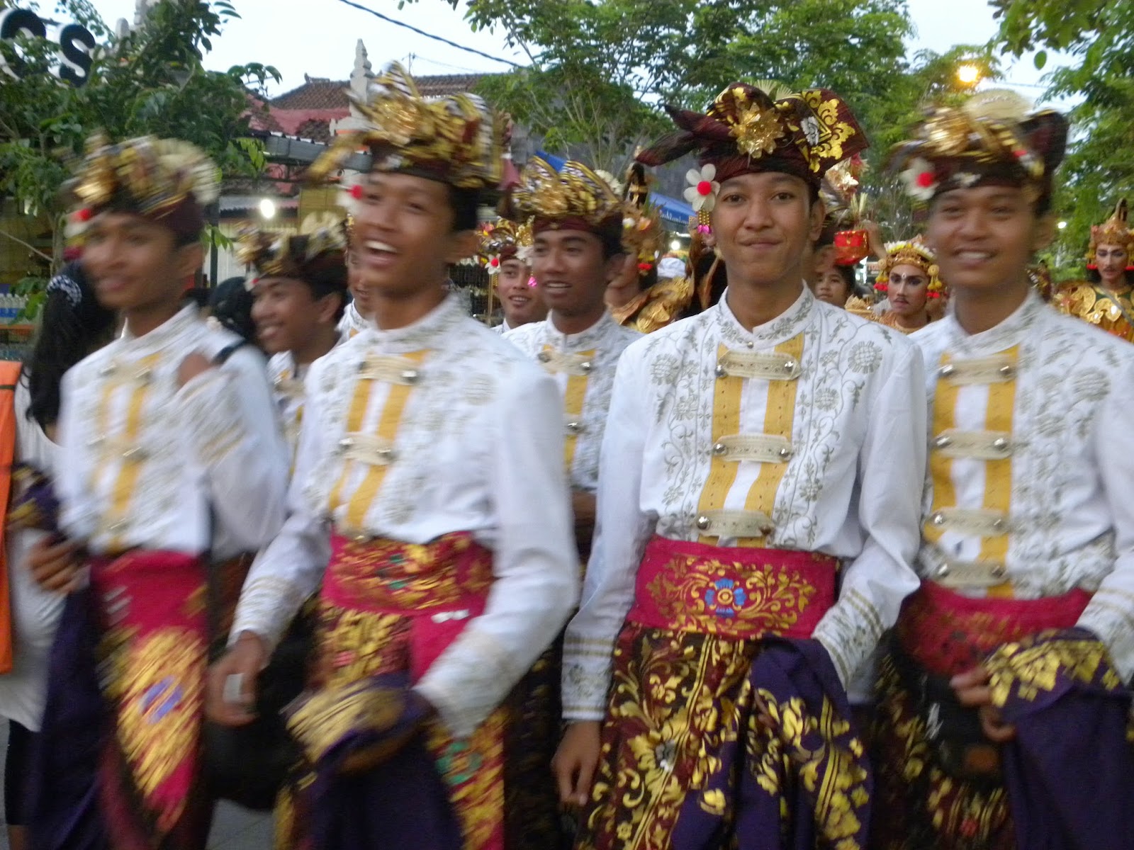 No retorno, nos deparamos com um desfile oficial com garotos e garotas fantasiados para alguma apresentação. Não entendi exatamente o que estavam comemorando, pois o motorista apenas informou que era um dia especial e também não encontrei informações na internet. No complexo de Tanah Lot é possível encontrar inúmeras lojas de artesanatos e comidas. No estacionamento nos deparamos com dezenas de ônibus, realmente, não era um dia qualquer em Tanah Lot.
