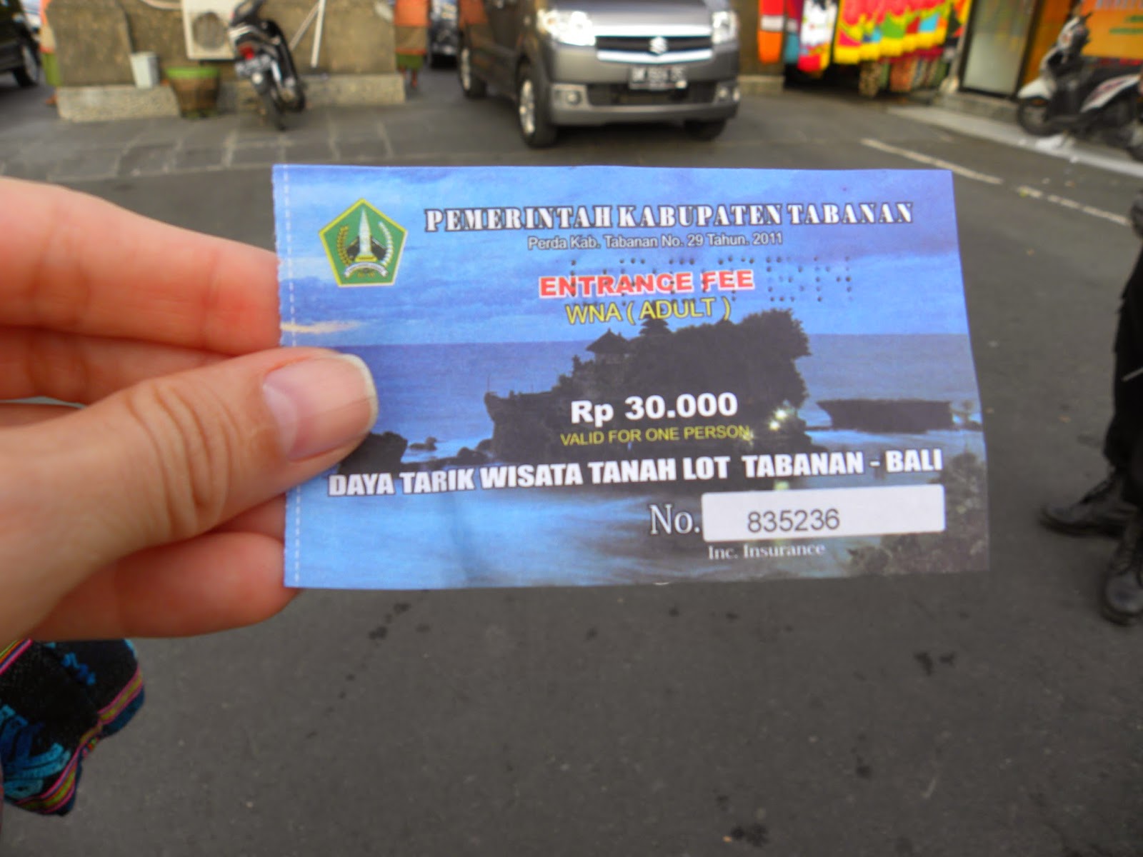 Seguimos para o primeiro escritório que vimos perto do Ubud Market e agendamos um passeio para ver o pôr do sol em Tanah Lot. Como já era tarde e só iriam duas pessoas, cobrou 20 dólares para cada. E nos buscou no hotel às 16:00h em ponto. O percurso levou cerca de 1 hora e 40 minutos.