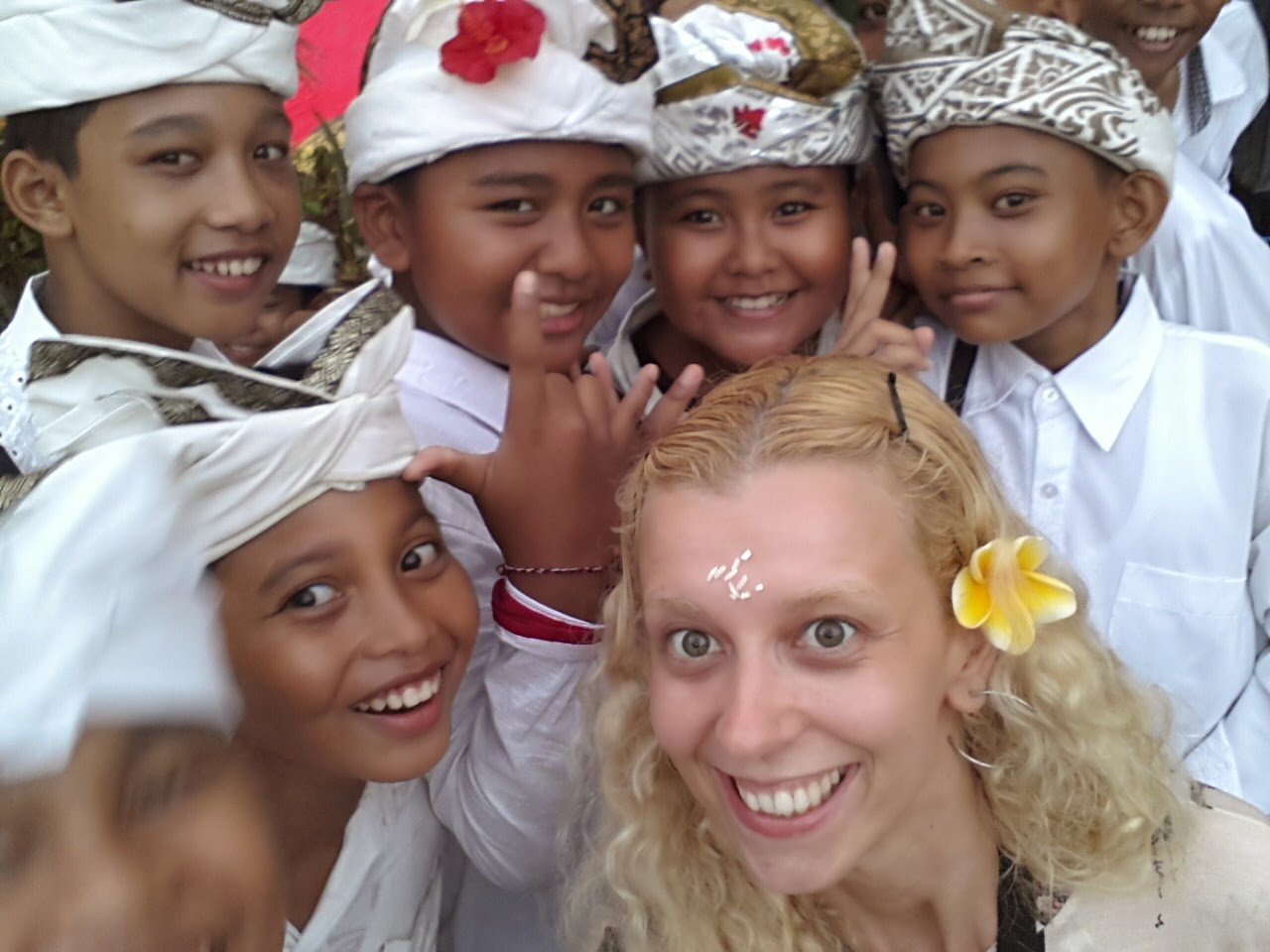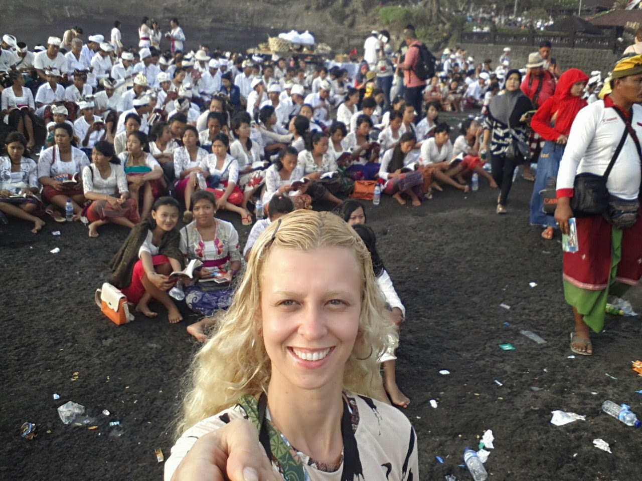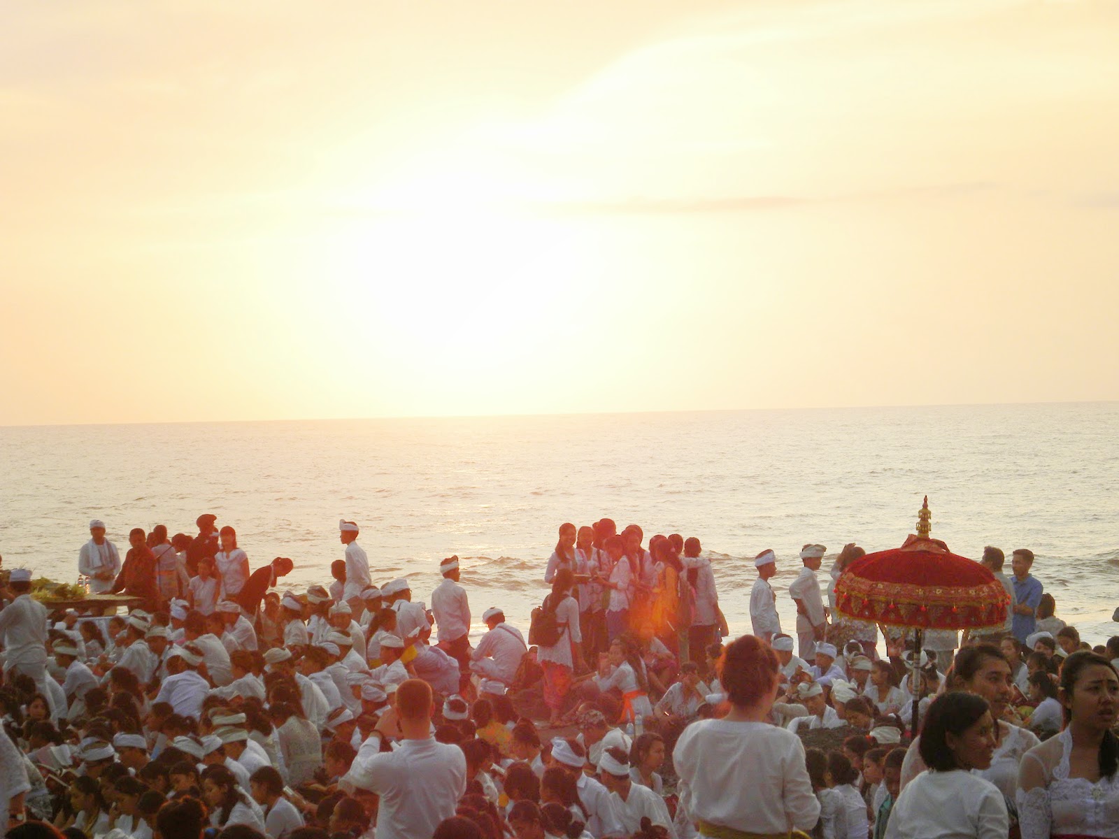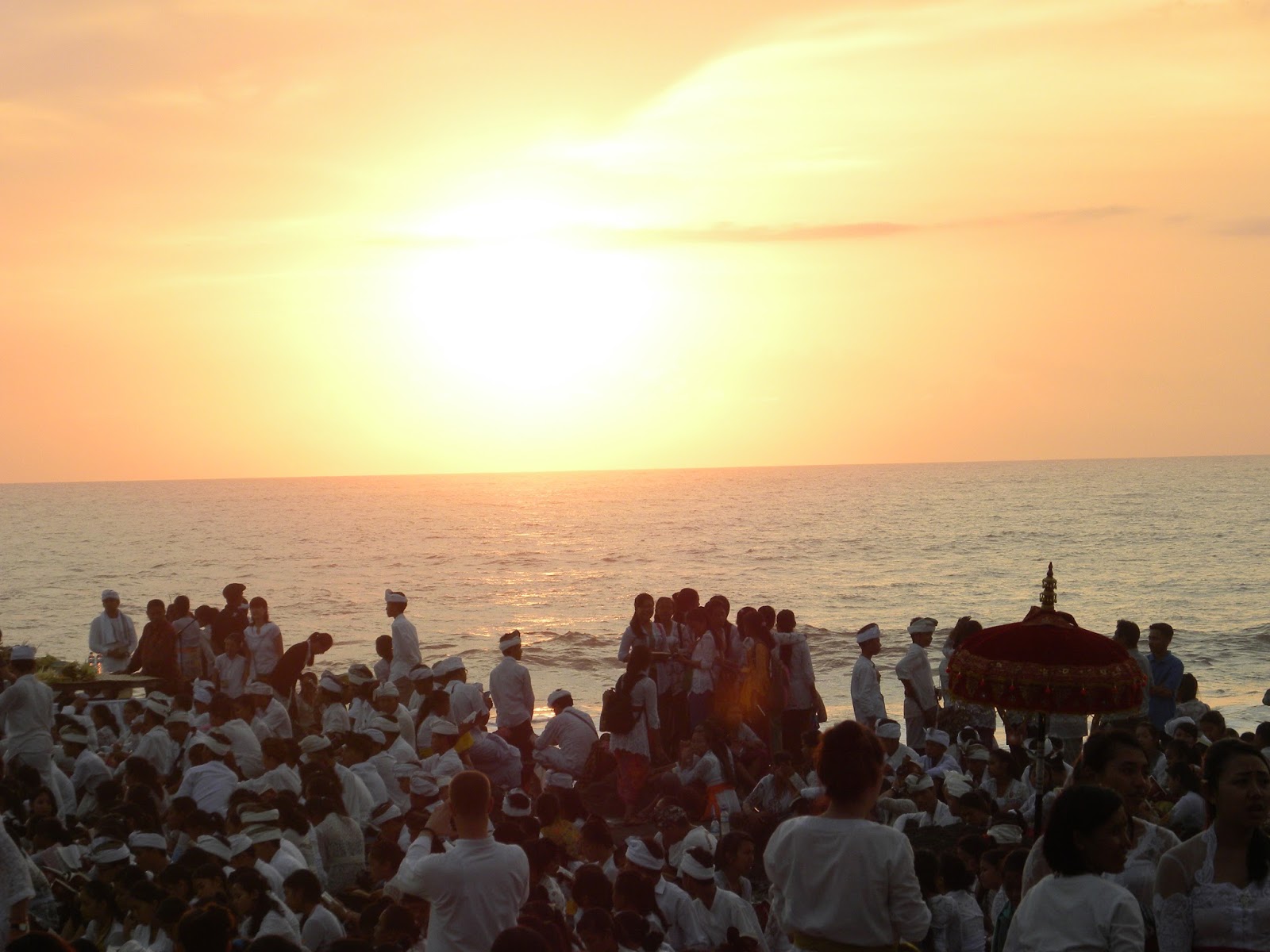 Chegando lá, depois dos encantos servidos pelo povo balinês, que sempre sorriam em com um simples contanto visual, além da emoção causada pelo canto. Em nenhum momento se sentiram incomodados com a presença de estranhos àquele mundo. Seguimos para a fila das pessoas que recebiam uma bênção. Eles mandam você molhar o rosto nas águas sagradas, colocam grãos de arroz na testa e uma flor atrás da orelha, sem questionar se professava o hinduísmo ou não.