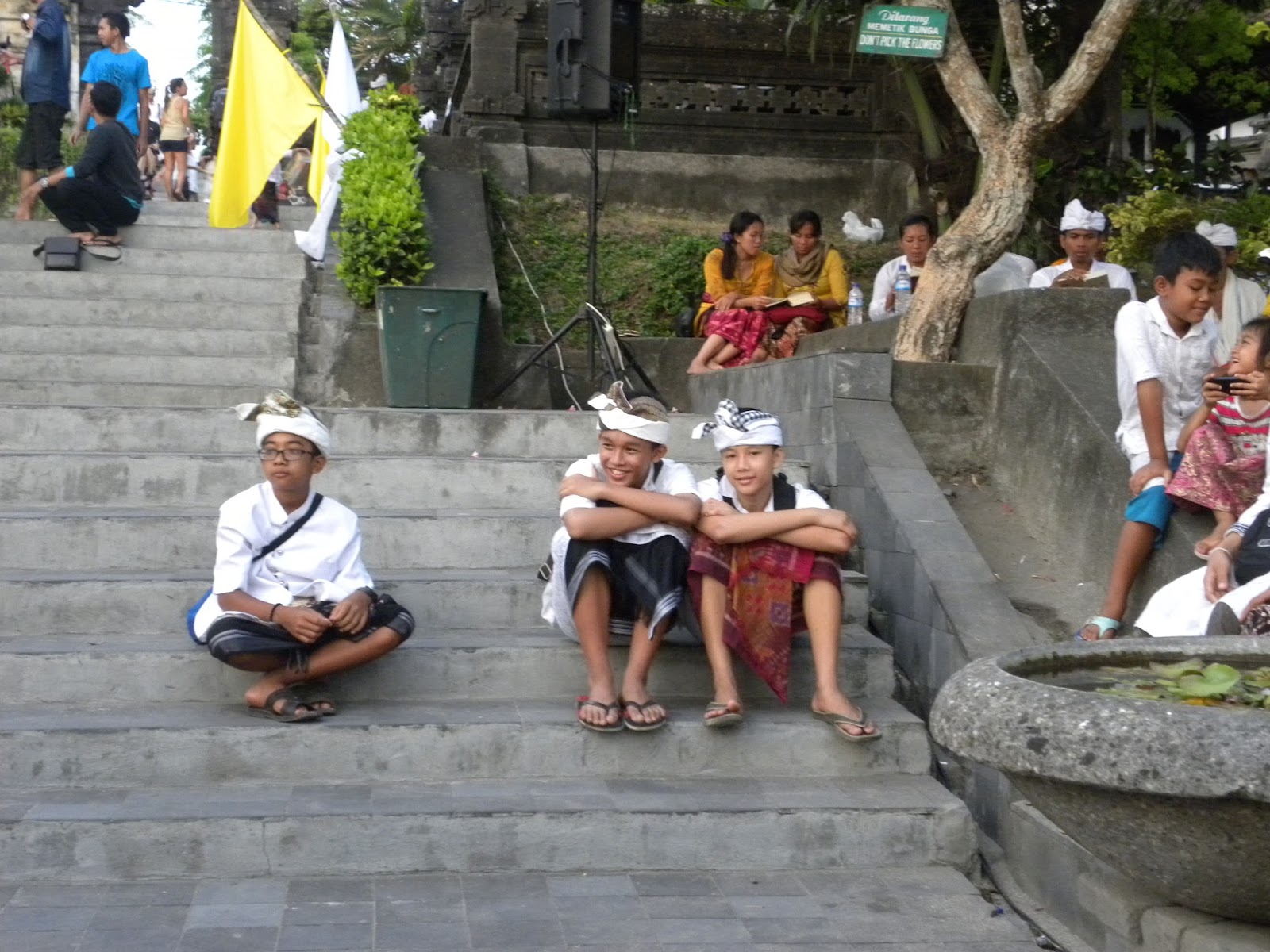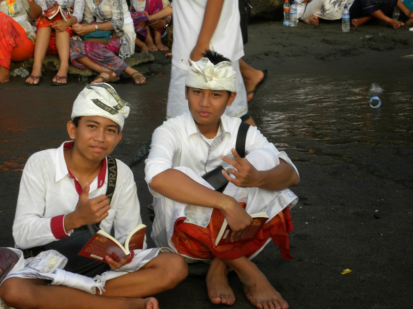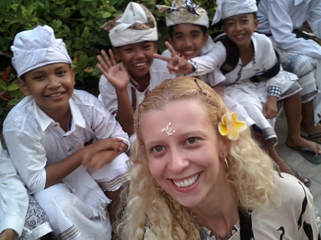 Chegando lá, depois dos encantos servidos pelo povo balinês, que sempre sorriam em com um simples contanto visual, além da emoção causada pelo canto. Em nenhum momento se sentiram incomodados com a presença de estranhos àquele mundo. Seguimos para a fila das pessoas que recebiam uma bênção. Eles mandam você molhar o rosto nas águas sagradas, colocam grãos de arroz na testa e uma flor atrás da orelha, sem questionar se professava o hinduísmo ou não.