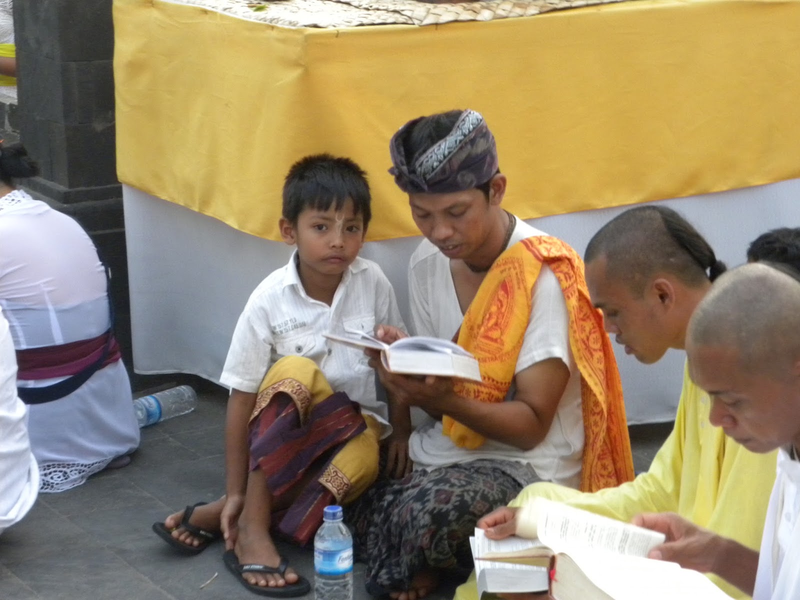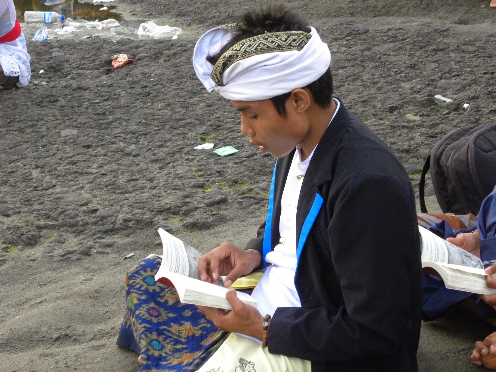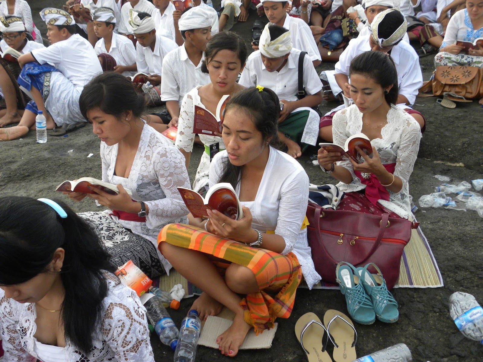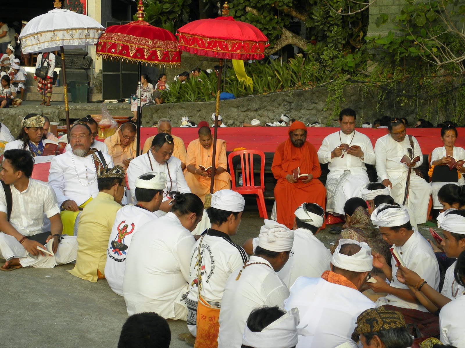 Chegando lá, depois dos encantos servidos pelo povo balinês, que sempre sorriam em com um simples contanto visual, além da emoção causada pelo canto. Em nenhum momento se sentiram incomodados com a presença de estranhos àquele mundo. Seguimos para a fila das pessoas que recebiam uma bênção. Eles mandam você molhar o rosto nas águas sagradas, colocam grãos de arroz na testa e uma flor atrás da orelha, sem questionar se professava o hinduísmo ou não.