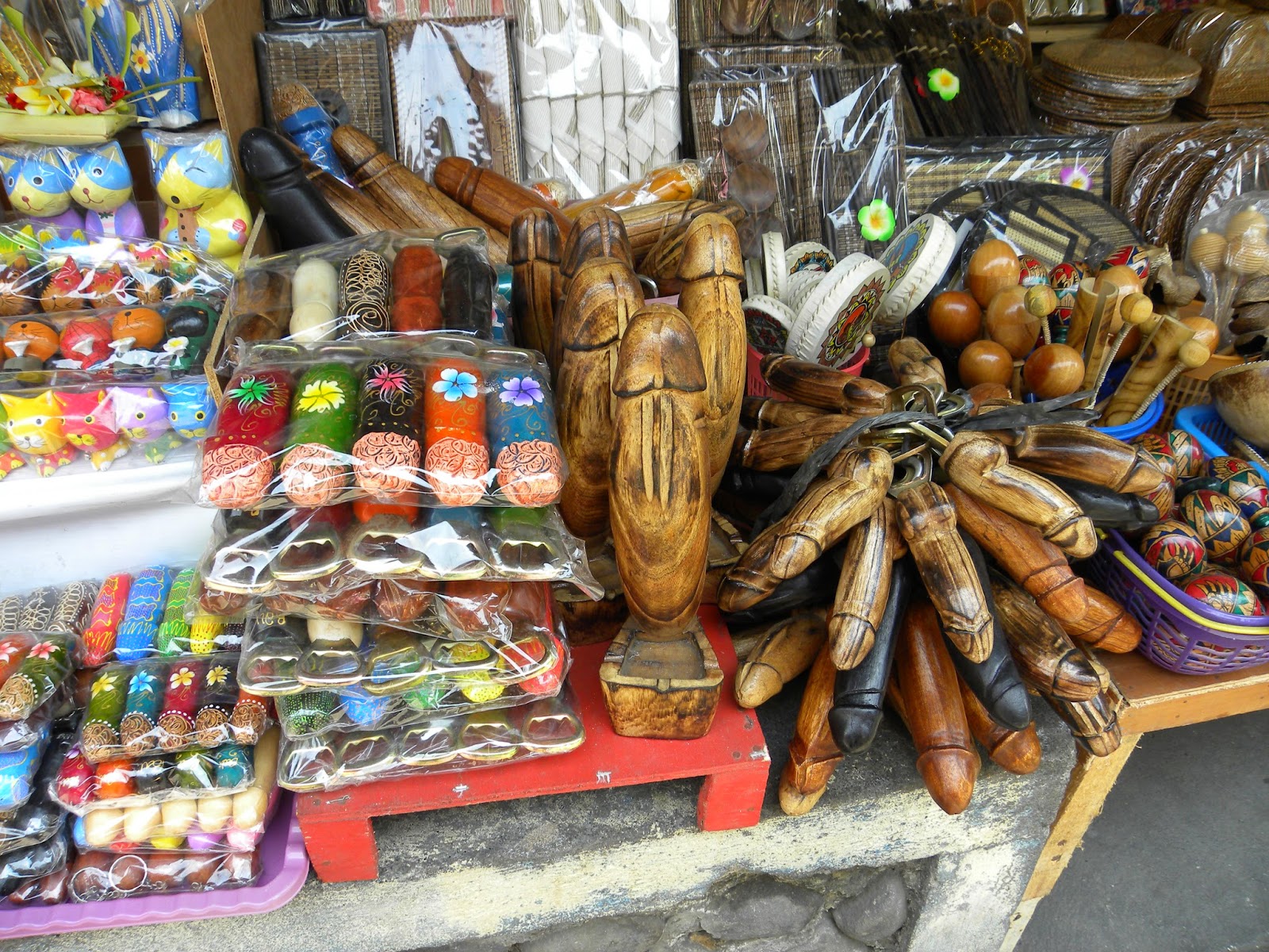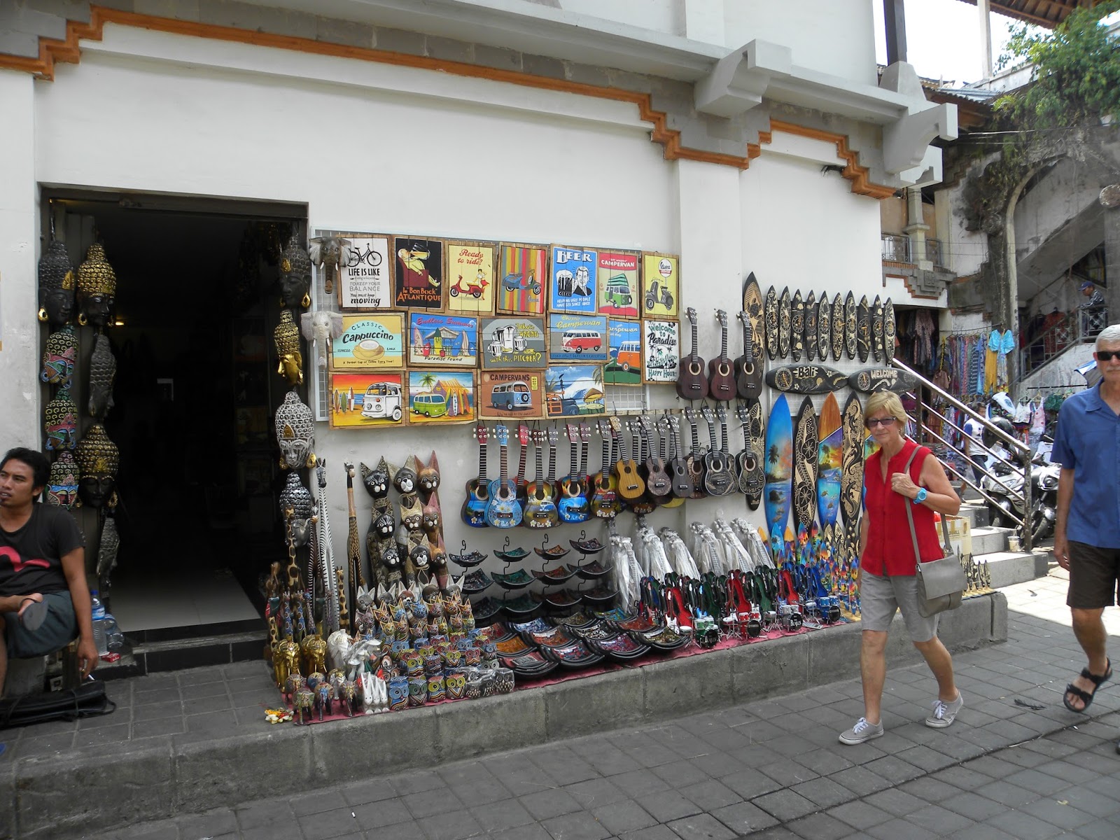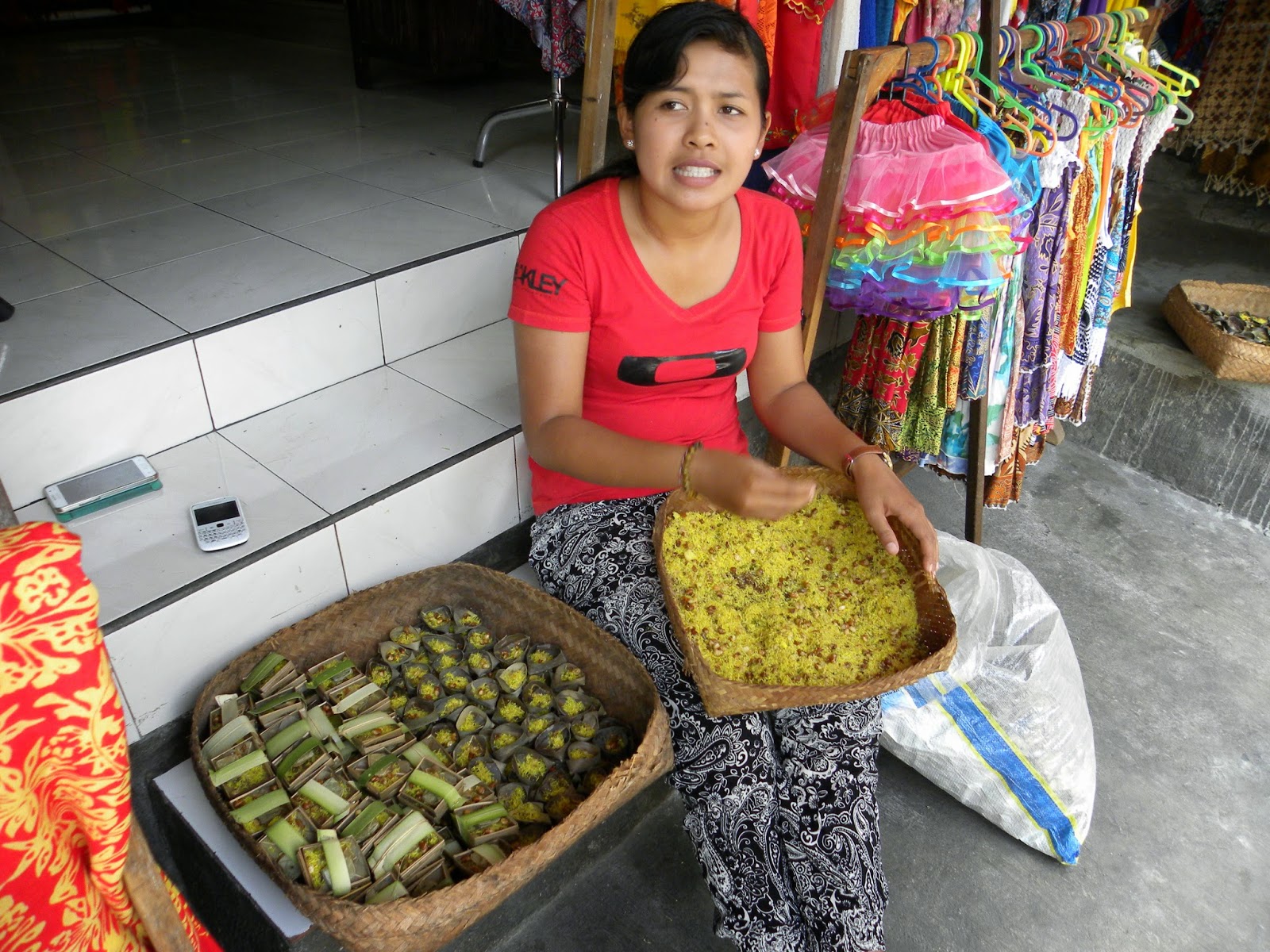 Dentro do Ubud Palace encontrei meu amigo e seguimos para o Ubud Market, que é uma delícia. Excelente para comprar o artesanato local, como sarongues, cangas, bolsas e esculturas. Nenhum artefato tem preço, então você terá que barganhar por cada peça. O primeiro preço dado pelo vendedor será sempre caro, mas você conseguirá por menos de 50%, se tiver paciência.