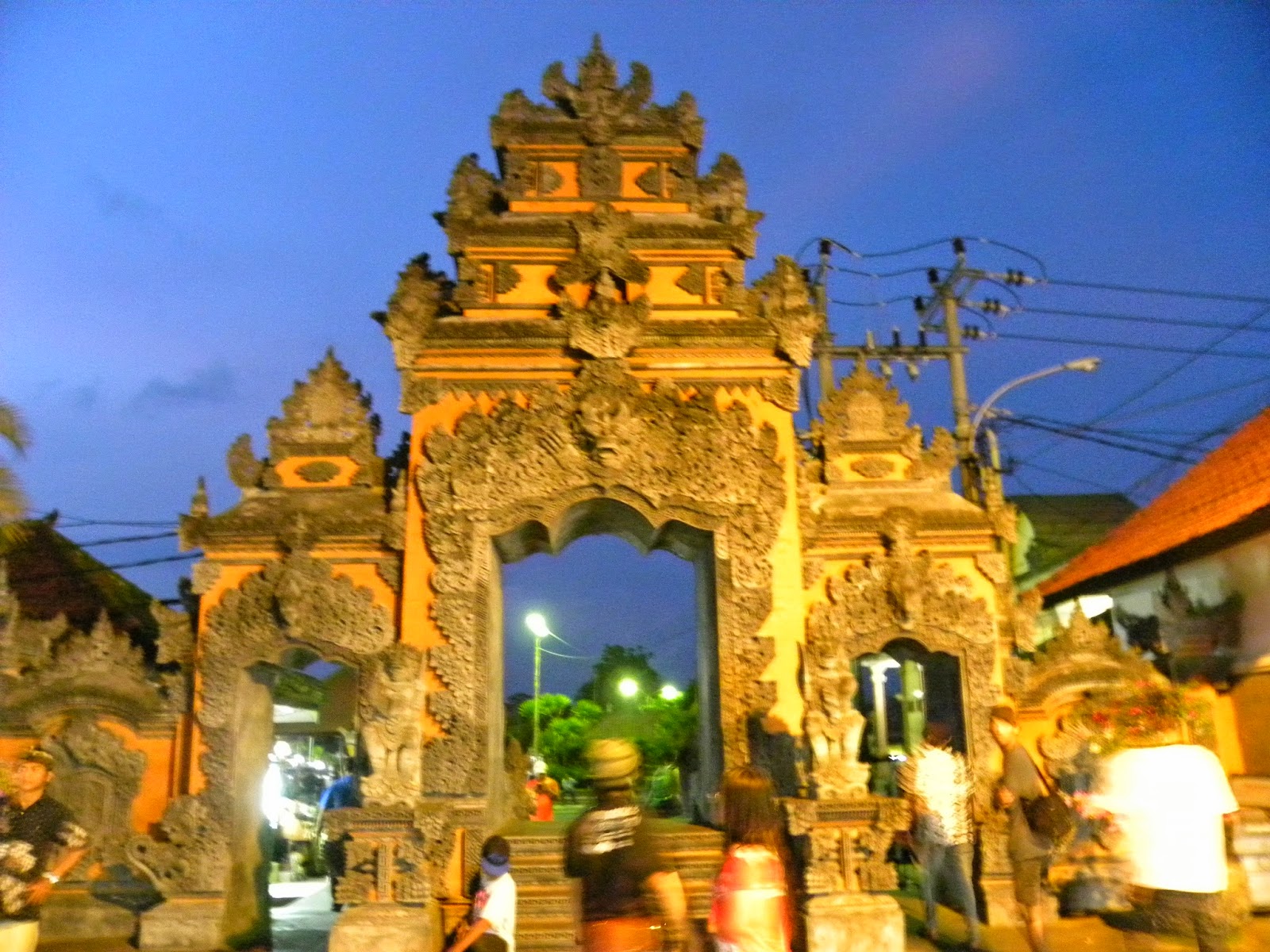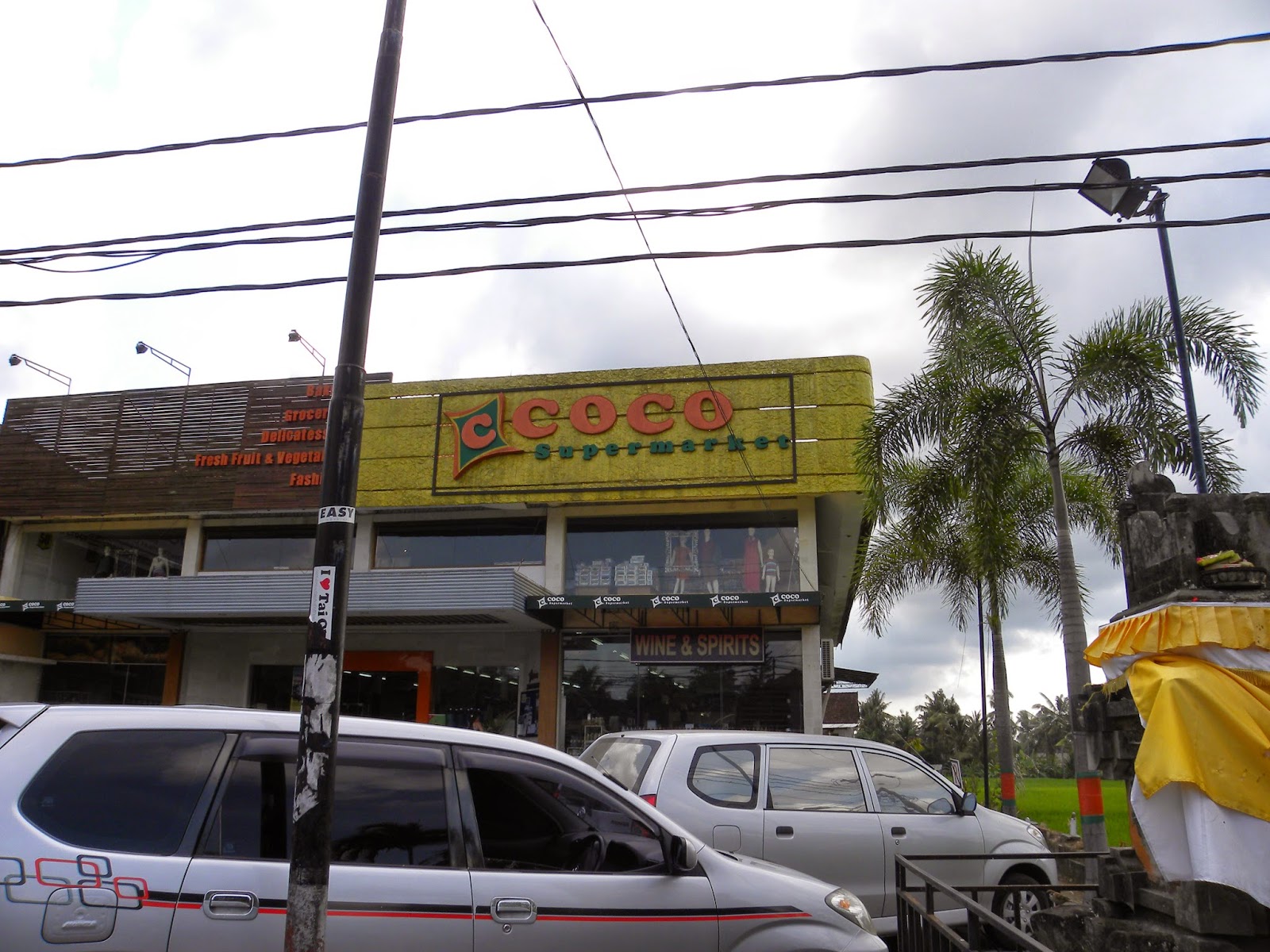 Tentei usar o celular do hotel e não consegui, pois não perguntei como deveria discar. Acabei pegando uma moto, pois tem um ponto na frente do supermercado Coco Market. O mototaxista me deixou na frente do Ubud Palace.