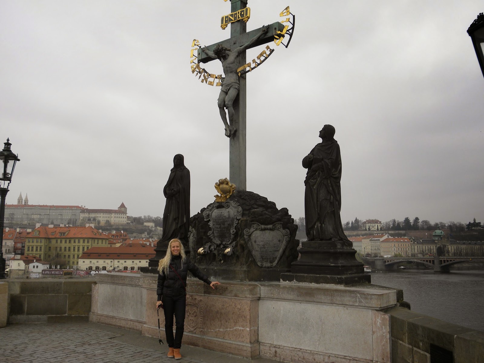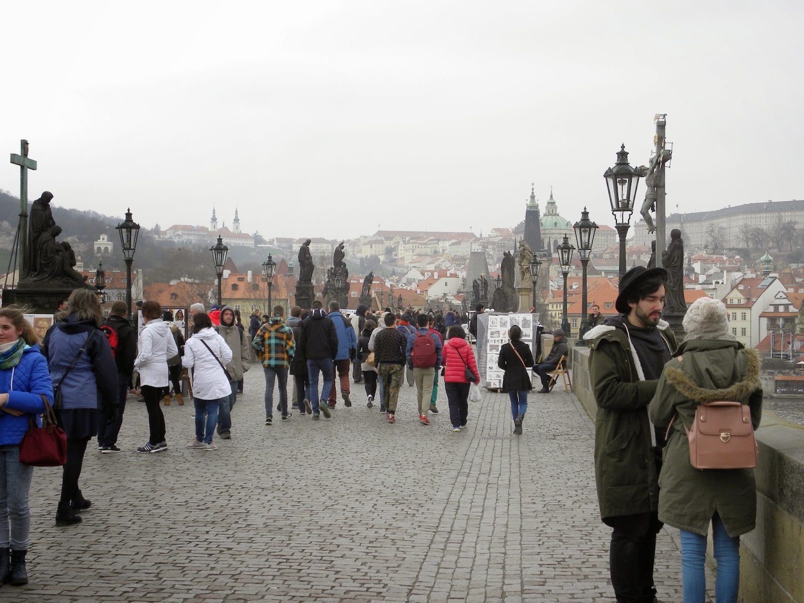 Acordamos e fomos degustar o café da manhã do hotel, que tinha grande variedade, logo depois seguimos para conhecer um dos pontos turísticos mais festejados da cidade: A ponte Carlos. É a ponte mais antiga de Praga. Sua construção teve início em 1357. É o local com a maior concentração de turista que vimos.