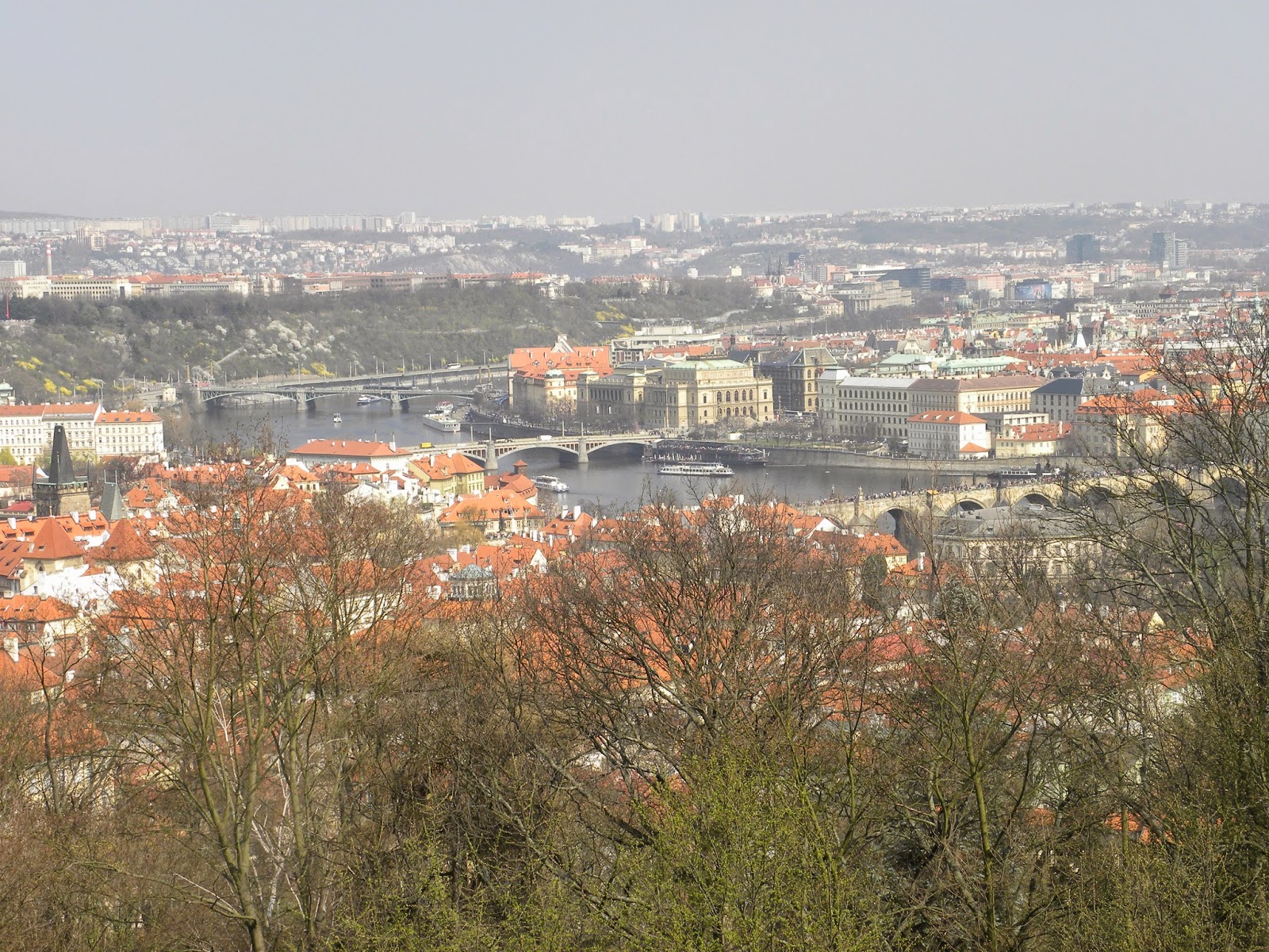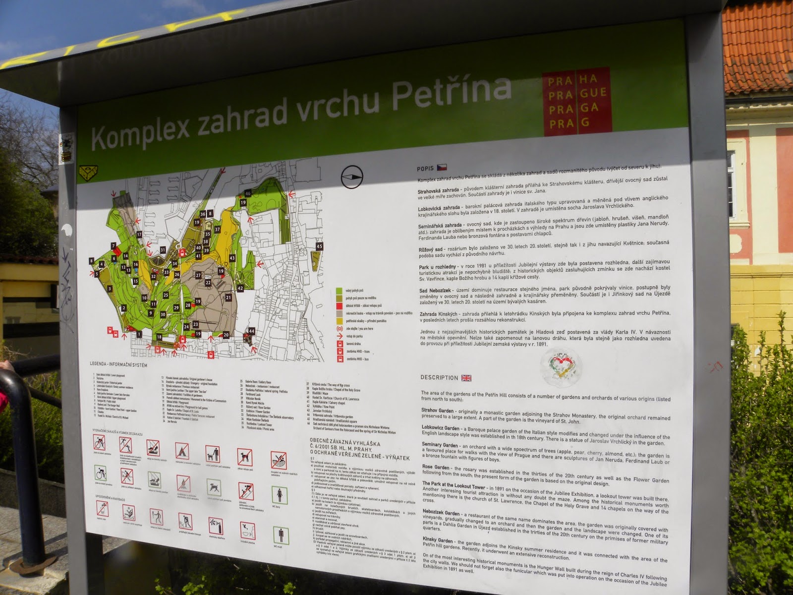 Fizemos uma longa caminhada até o “Labirinto dos espelhos”. É realmente distante! Caminhamos até o início do Monte Petrín, pois o mapa mostrava que havia um funicular (trem) para subir o monte, mas, naquele dia estava fechado! Olhamos e refletimos se seria possível chegar no destino caminhando, pois avistamos uma grande muralha. Decidimos subir. O caminho é lindo e pouco turístico. Muitos moradores aproveitavam o sol para fazer piquenique, caminhada e andar de bicicleta. Pensamos em desistir em alguns momentos, mas, após persistirmos, chegamos no topo. A vista foi um prêmio para o esforço. Pagamos 90 coroas para entrar e nos divertimos muito. Rimos como crianças com as deformações causadas pelos reflexos. No alto do monte Petrín tem uma Torre de Observação e o Jardim Vrtba.