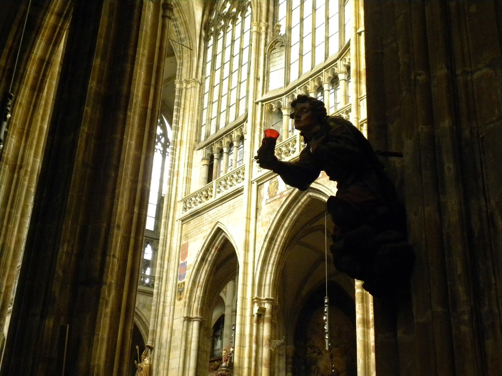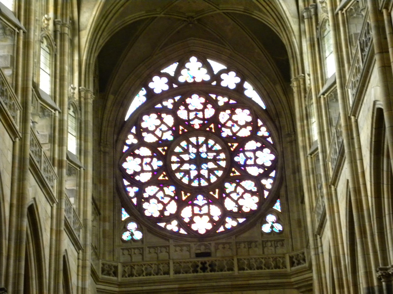 A primeira visita foi na Catedral de São Vitu, que é a maior igreja da República Tcheca, construída no estilo gótico, iniciada em 1344, mas só finalizada em 1929. É interessante observar os elementos característicos da arquitetura gótica: as rosáceas e os vitrais, a planta em cruz latina, as abóbadas em formato ogival.