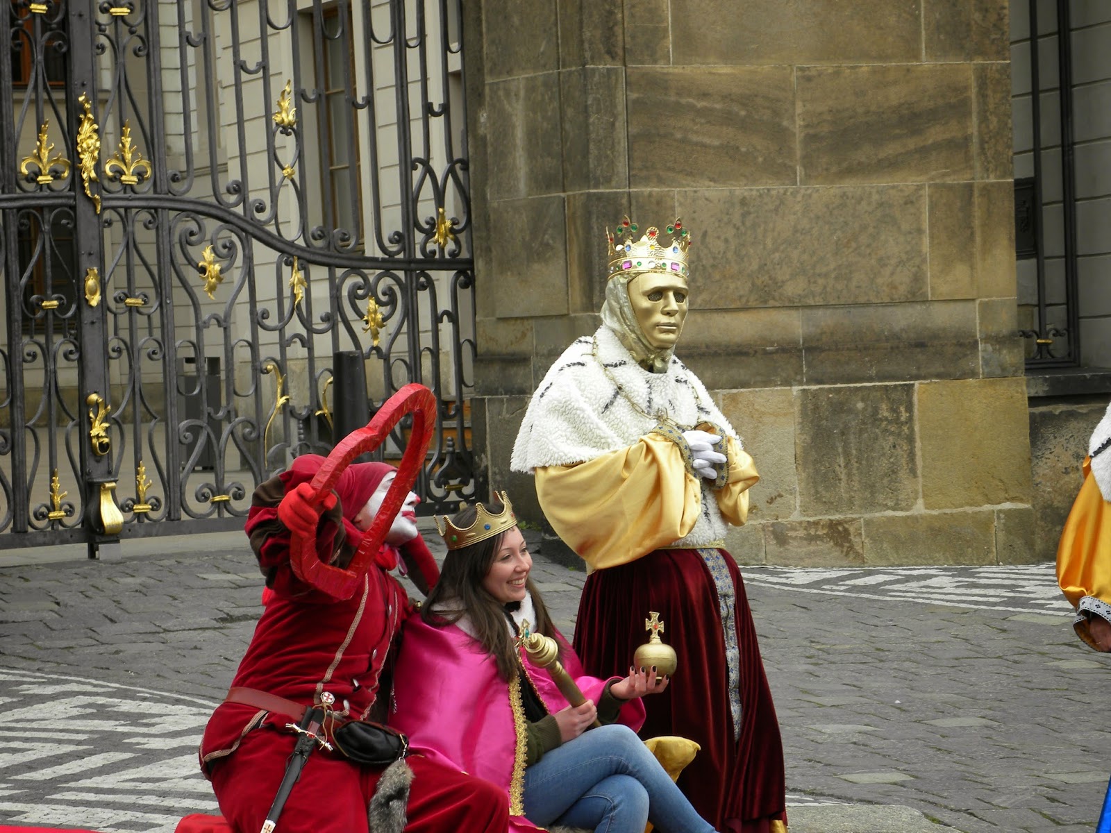 Assim que subimos a rua que dá acesso ao Castelo dePraga, pudemos observar a paisagem pictórica da cidade. É o maior castelo do mundo, pois, além de ser a sede da presidência (antigamente dos reis), comporta diversos prédios: igreja, museu, convento. Existem algumas opções de tíquetes, dependendo das construções que pretende visitar. Comprei o bilhete que dava acesso às principais atrações e custou 350 coroas.