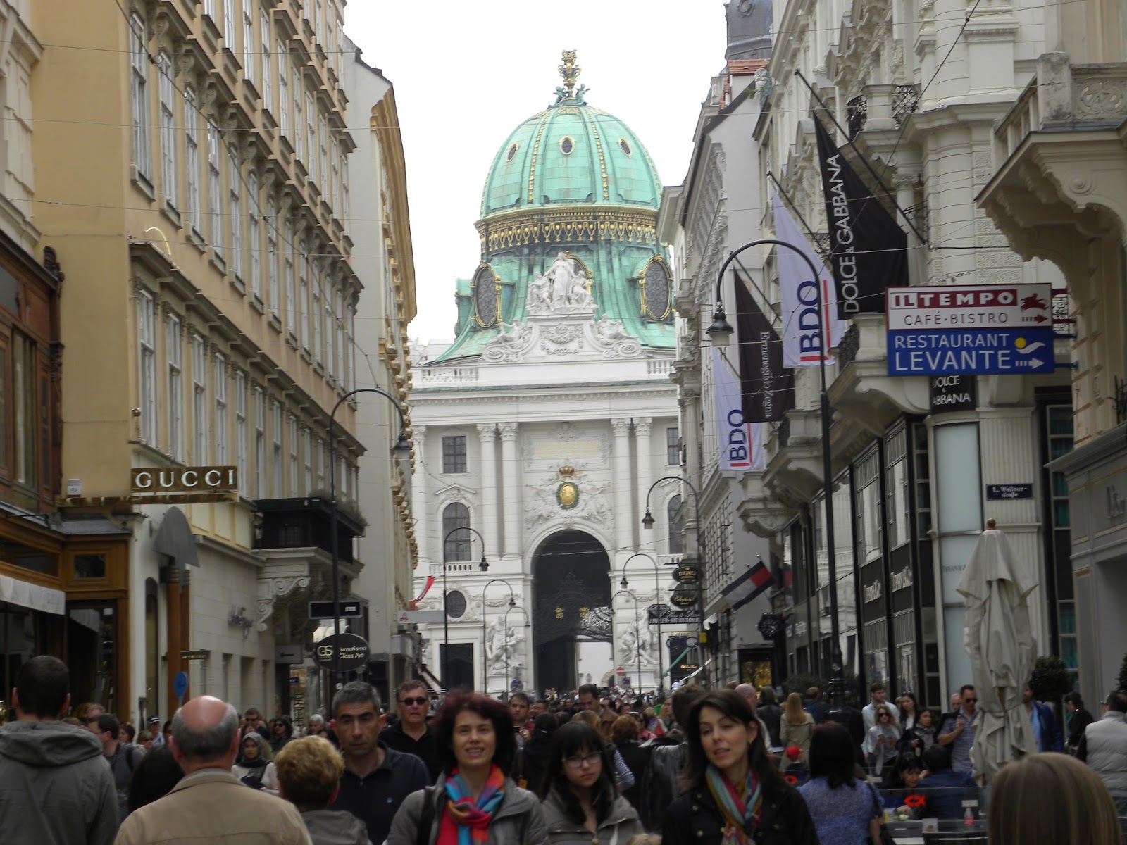 Saímos em direção à estação de metrô, que ficava muito próxima. O funcionamento do metrô é muito parecido com o que vi em Berlim: não tem catraca, apenas é necessário validar o bilhete (comprado na máquina) para o caso do fiscal passar e pedi-lo. O centro de Viena, talvez por ser sábado, tinha um oceano de pessoas caminhando, tornando o deslocamento pelas ruas praticamente impossível.