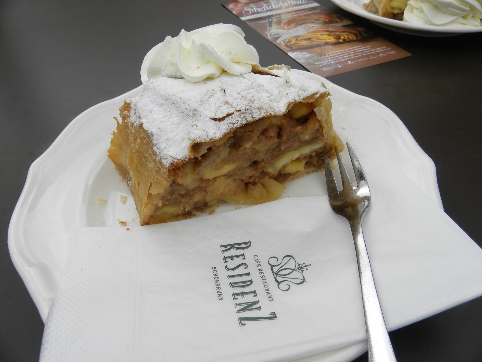 Antes de começarmos a visita, tivemos uma das melhores experiências gastronômicas que se pode ter na Áustria: entramos no CaféRestaurant Residenz e apreciamos um delicioso apfelstrudel (criação austríaca) com um café. É importante ressaltar que os cafés constituem patrimônio imaterial em Viena (Wiener Kaffeehaus). A visita deve ser realizada sem pressa, pois o lugar é enorme. No fim do tour, ainda pudemos apreciar uma apresentação de música erudita nos jardins do palácio.