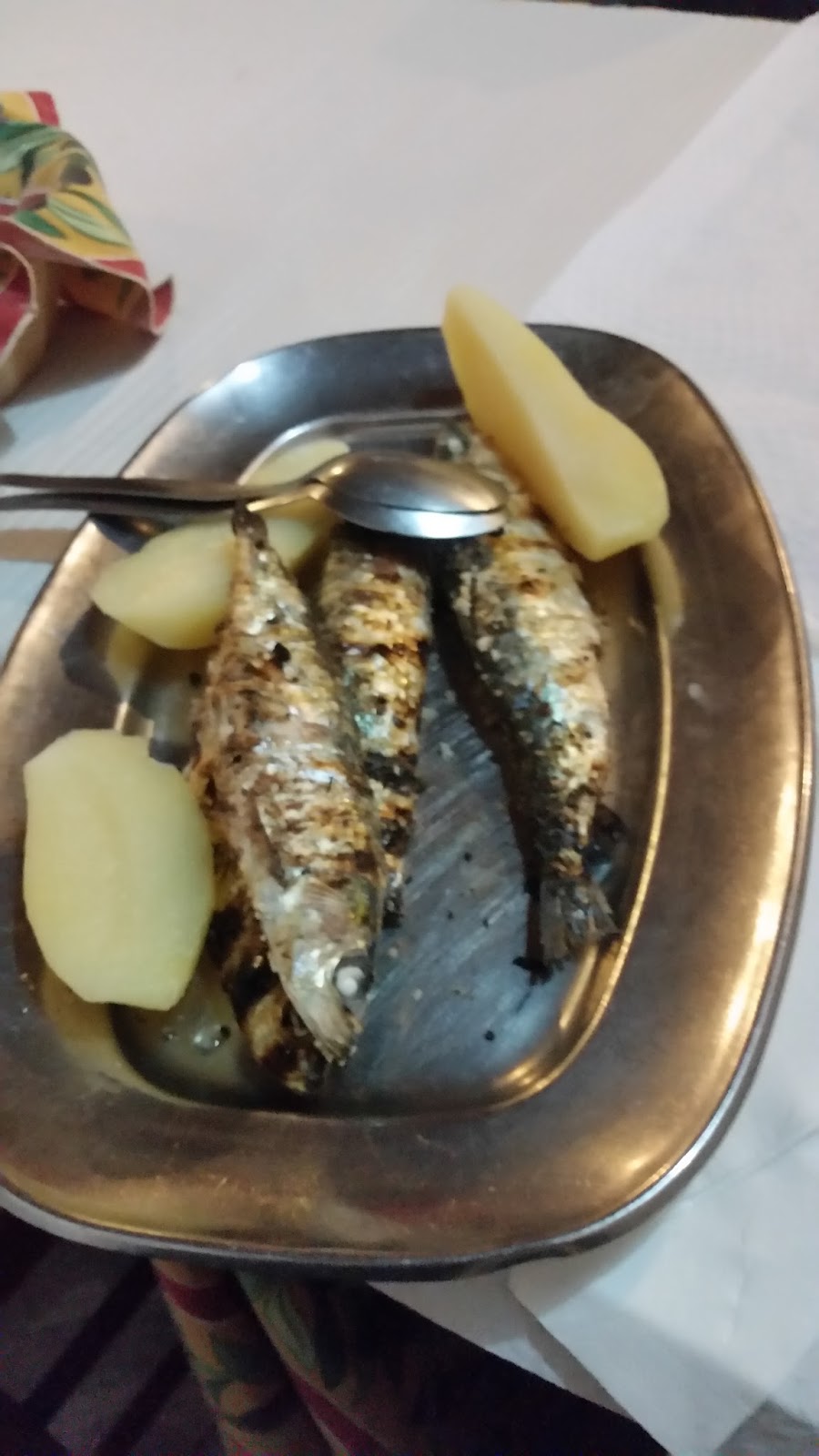 Para jantar, recorremos ao restaurante que ficava na porta: O Trigueirinho, no Largo dos trigueiros. Primeiramente, perguntei se a porção era para uma pessoa e a resposta foi “sim”. Então pedi sardinhas assadas e o Victor pediu carapauzinhos fritos com feijão frade. Os pratos eram abundantes! Deixamos muita comida. O restaurante é simples, bom e barato. E oferecem de entrada ótimas azeitonas e o maravilhoso queijo Serra da Estrela.