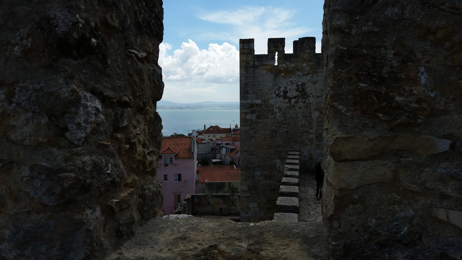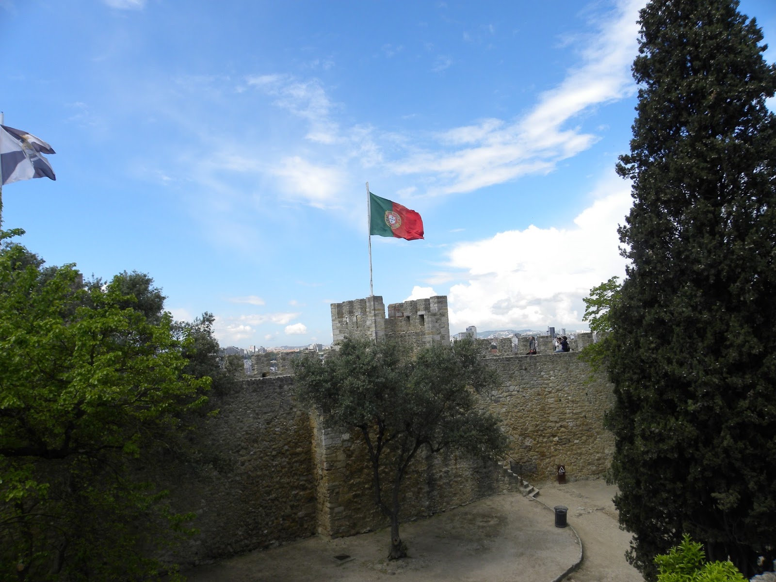 Após o café da manhã e banho, seguimos para o ponto turístico mais próximo do apartamento (cerca de 5 minutos, em razão das ladeiras, pois fica ao lado), o Castelo de São Jorge (http://castelodesaojorge.pt/). A entrada custou 8,5 euros. A vista é belíssima, pois podemos apreciar Lisboa e o Tejo do alto. O site fornece um relato histórico acerca do Castelo: