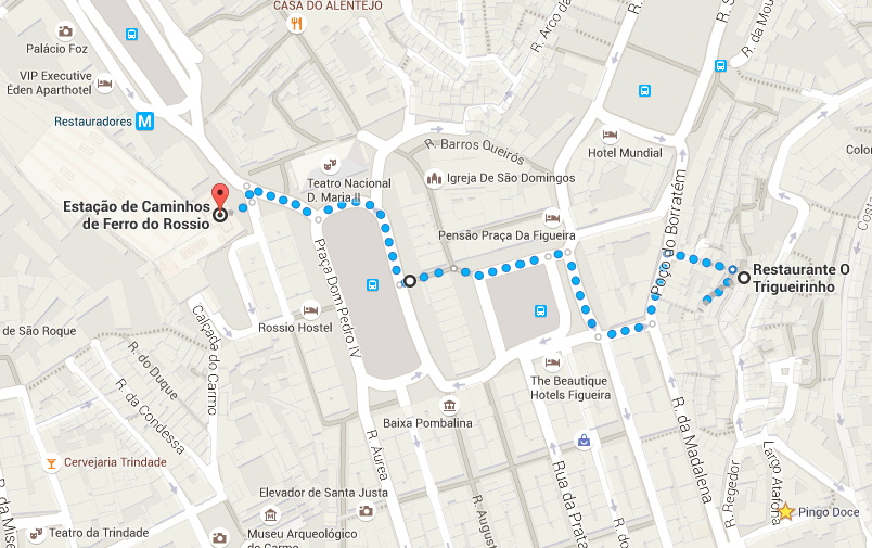| Percurso do apartamento (e Lisboa) até a estação de trem do Rossio. |
