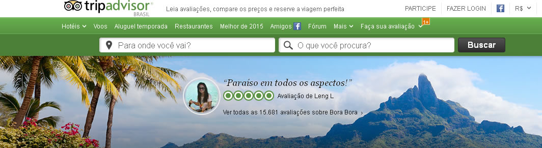 É o melhor site de viagem. Raramente reservo um hotel ou “tour” sem antes dar uma olhada no tripadvisor. Também contribuo com avaliações sobre os estabelecimentos e atividades. Tenho o aplicativo no celular e sempre baixo o mapa das cidades que visito. Ele oferece um excelente serviço: a opinião de pessoas que se hospedaram ou visitaram determinada atração, além de mostrar uma lista de hotéis, classificados pelas melhores notas, sendo que ao lado aparece o preço nos sites de reserva com um link direto. É claro que é necessário ler tudo com bom senso, aproveitando o que for útil. Lembro-me que uma vez procurei por um hostel, que tinha a diária de 30 reais para o quarto individual, e me deparei com alguém reclamando que não tinha iogurte no café da manhã!