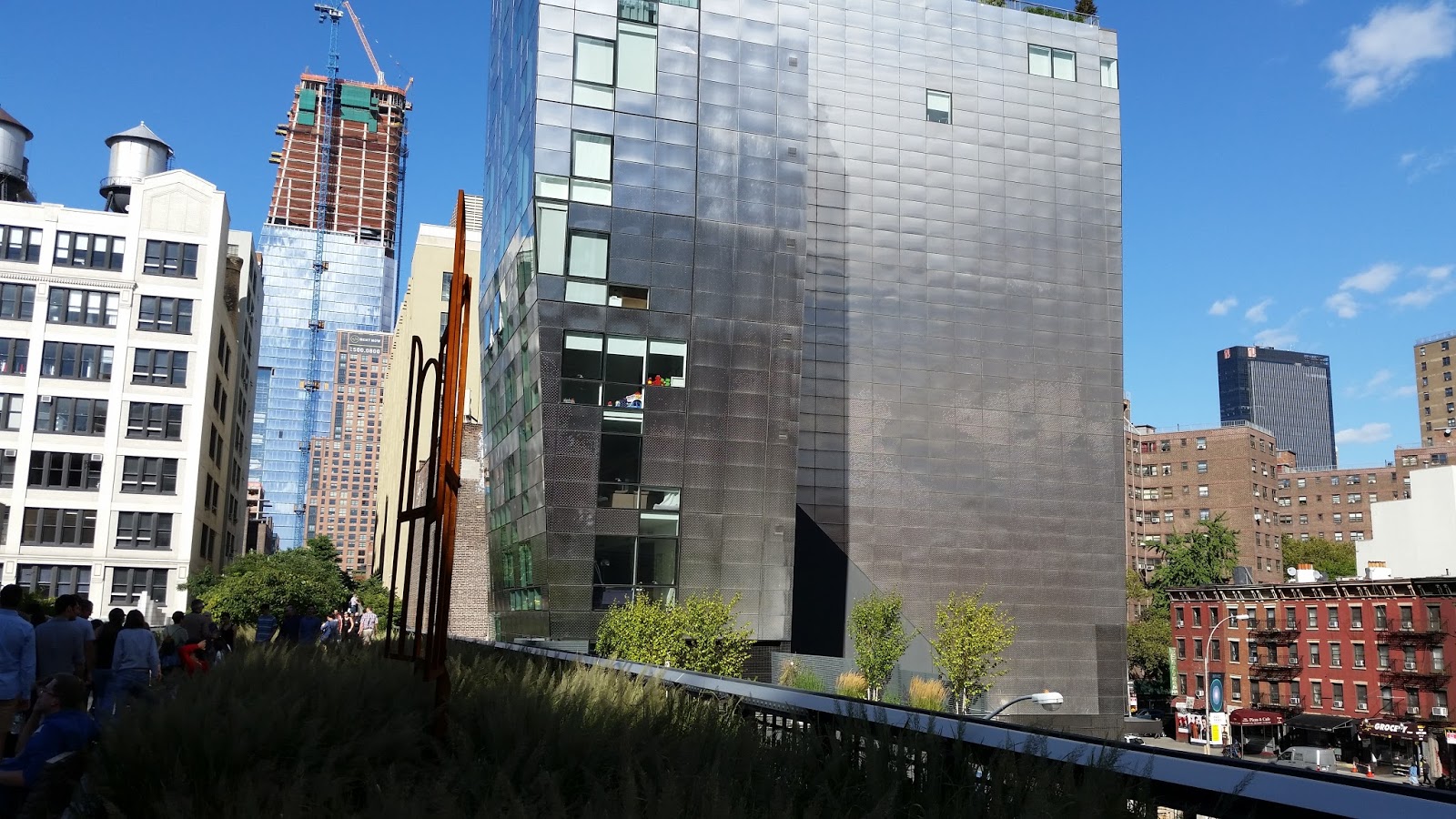 De lá partimos para o High Line Park, um parque suspenso construído, em 2009, sobre uma ferrovia desativada, no bairro do Chelsea. Admito que tinha uma expectativa que o parque fosse incrível. É uma experiência muito interessante, pois muitos prédios com uma arquitetura contemporânea foram construídos ao lado, mas o passeio em si é confuso em razão da aglomeração de pessoas num espaço estreito. E, na época que fui, as plantas mais pareciam um matagal, sem flores ornamentais.