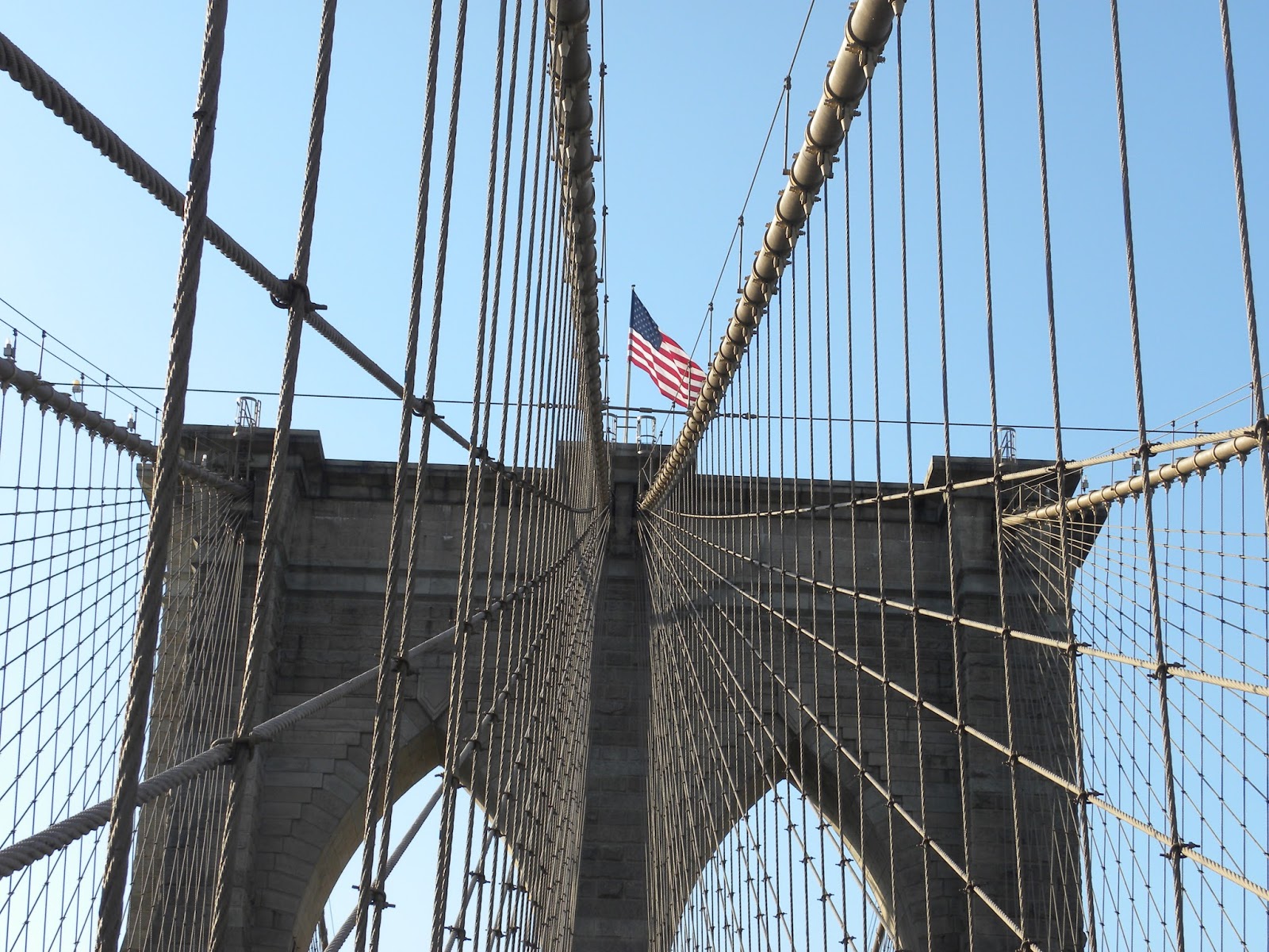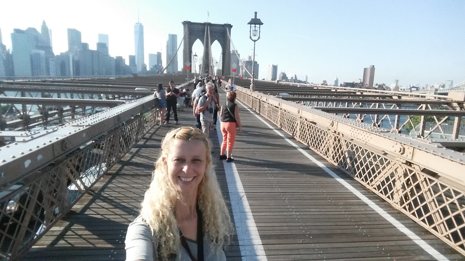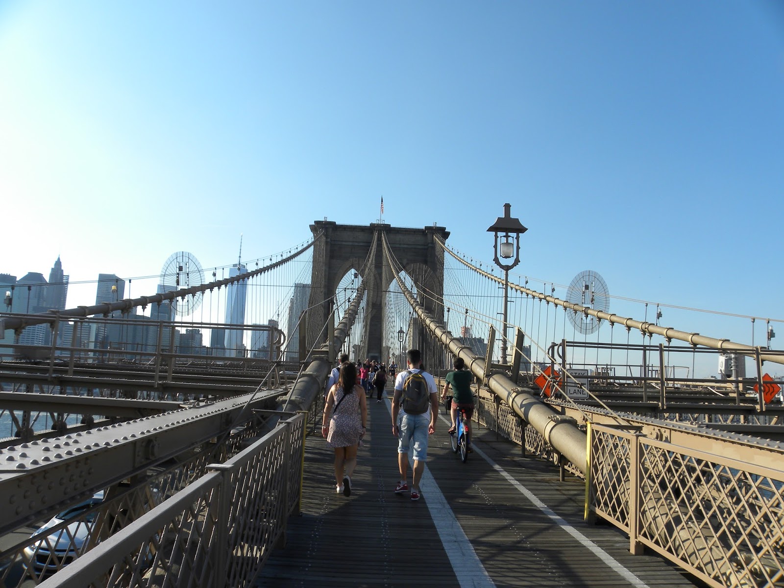 Comecei minha caminhada pela ponte, que estava repleta, pois era sábado. Centenas de pessoas estavam disputando um espaço ínfimo. Apesar do calor, o passeio é um deleite para os olhos, pois é possível contemplar todas as construções de Manhattan (por isso preferi fazer o caminho partindo Brooklyn para Manhattan, não o contrário). O fluxo contrário era muito maior, que me deixou aliviada pela minha escolha. No retorno, antes de entrar no metrô, caminhei pelo City Hall Park.