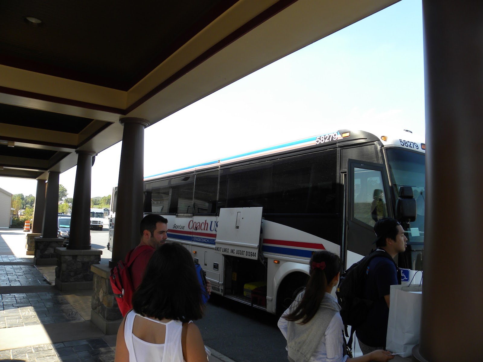 Chegando lá, tentei mandar mensagem para Carol e Wendel, que também iriam, mas não tive sucesso. Leo preferiu ficar na ilha para visitar o MoMA. Perguntei ao segurança onde ficava o guichê do “Coach USA”, que é a companhia que faz o trajeto até o museu e o outlet, e recebi a informação que deveria seguir até o 3º andar.
